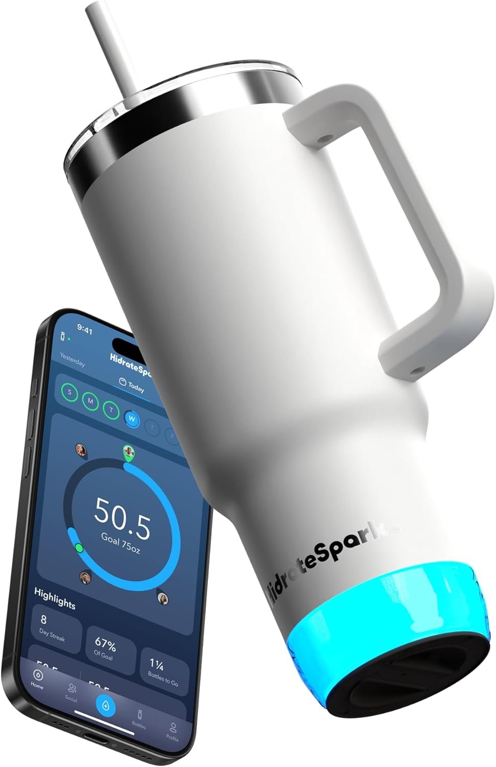 BLUETOOTH SYNC + FREE APP INTEGRATION – Connect via Bluetooth to the free HidrateSpark app. Track your progress, receive personalized hydration goals, view history, join challenges, compete with friends, earn trophies, manage multiple bottles from one app, and hit your hydration goals.