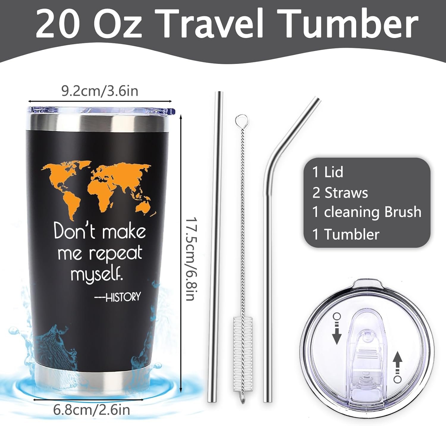 Fits for Most Car Holders: Lightweight, portable, fun, the history travel tumbler is designed for your everyday life and fits perfectly into most car cup holders, It is also easy to carry when you travel.
