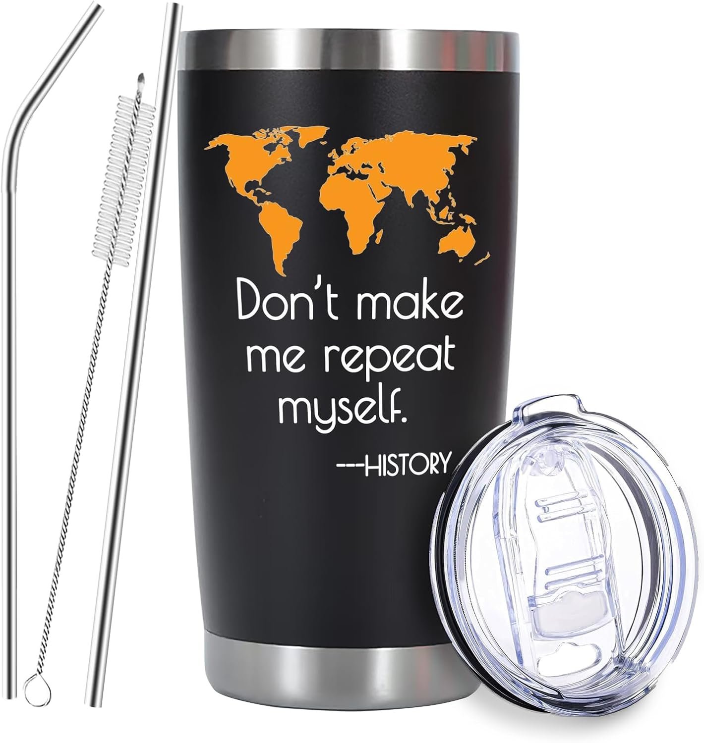 History Gifts: 20oz Don’t Make Me Repeat Myself Stainless Steel Travel Tumbler, Christmas & Birthday Gift for History Teacher, Black