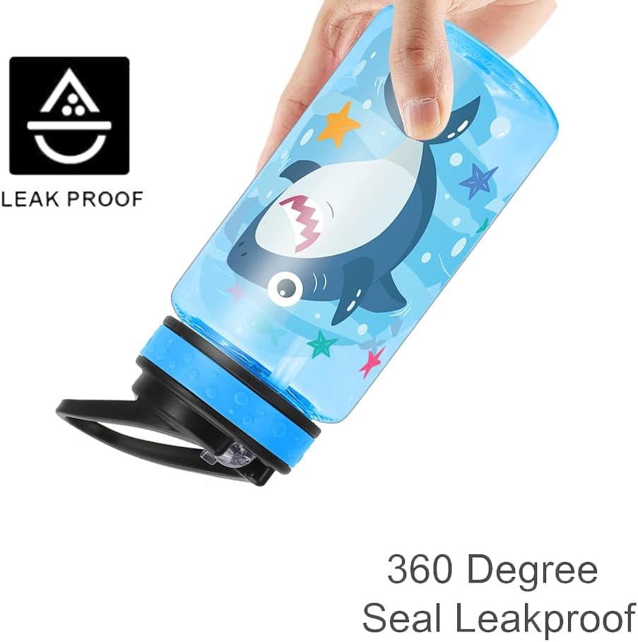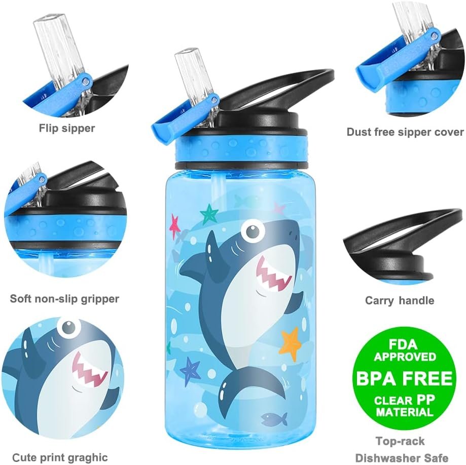 Home Tune 15oz Water Bottle for Kids Girls Boys School, BPA Free, Leak Proof Flip Straw, Carry Loop, Easy Clean – Shark