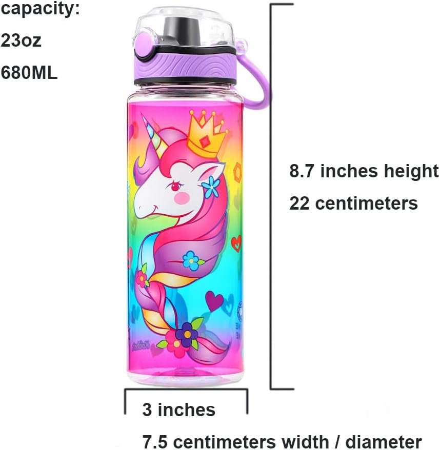 Home Tune Cute Water Bottle for School Kids Girls, BPA FREE Tritan & Leak Proof & Easy Clean & Carry Handle, 23oz/ 680ml – Unicorn