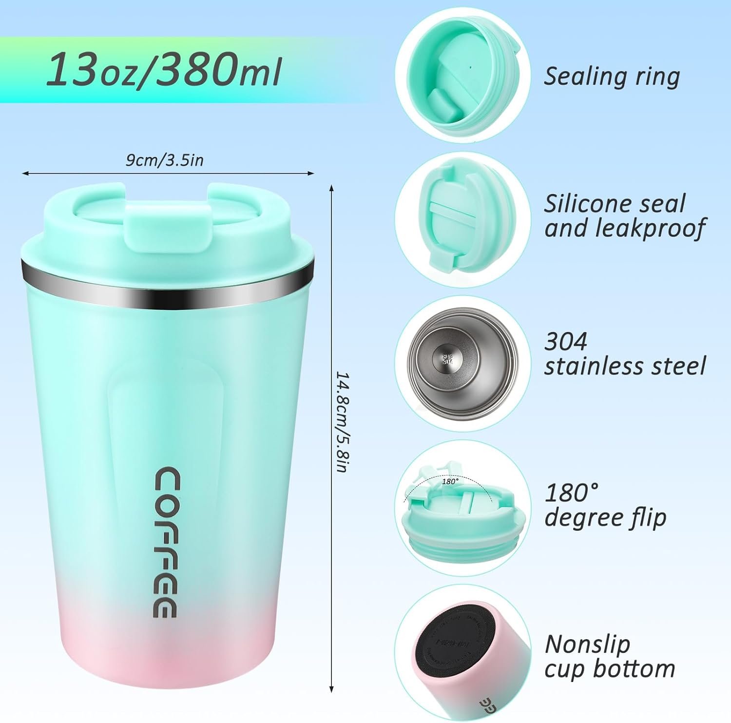 Package Includes: there are 5 coffee cups with lids in gradient colors, offering a variety of choices to match different styles or moods; This allows users to enjoy their favorite drink while adding a touch of individuality to their beverage experience