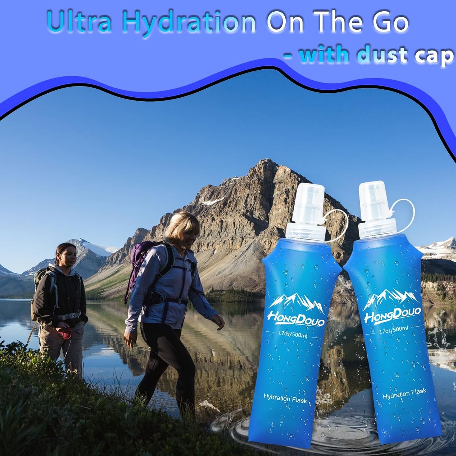 [Upgraded TPU Soft Flask] Our 17oz/500ml hydration flask Crafted with food-grade TPU frost-tech, this soft flask water bottle meets infant oral safety standards. 100% BPA and PVC free, non-toxic and odorless. The ultimate hydration companion for hiking families and marathon dreamers.