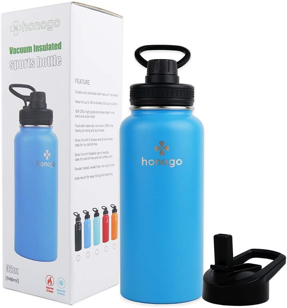 INNOVATIVE VACUUM INSULATION: With double layered vacuum-insulated, Honogo 32 ounce thermo bottle provide perfect termperature control, keep beverages cold up to 24 hours, and hot up to 12 hours with fresh taste. 100% sweat free and no condensation