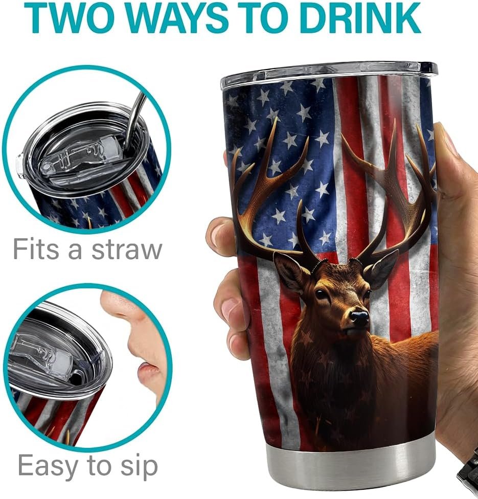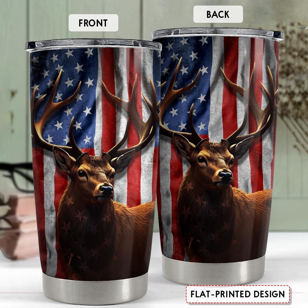 Hunting Tumbler Cup 20oz Deer Hunting Gifts for Men Hunters American Flag Stainless Steel Insulated Tumblers Coffee Travel Mug Hunter Gift for Birthday Christmas
