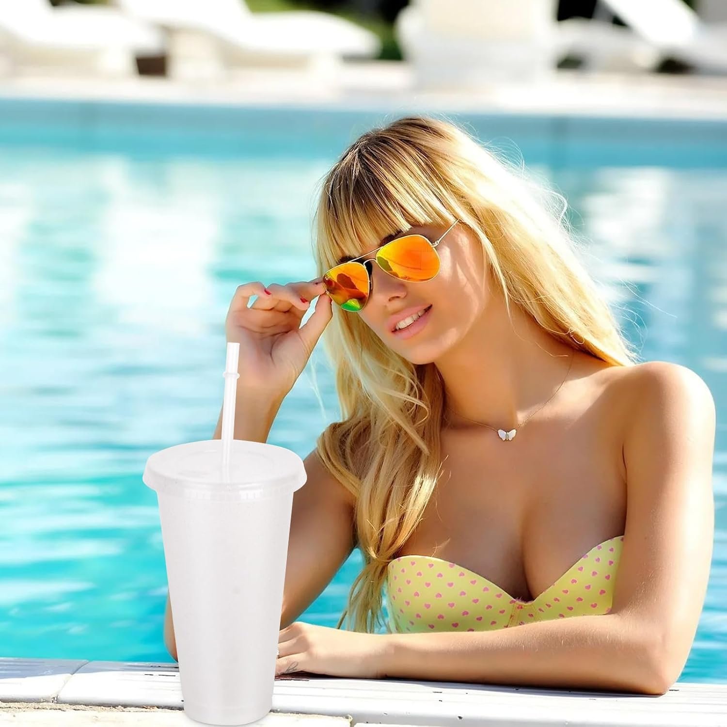 Large Capacity: These glitter reusable cups have a capacity of approximately 24 ounces, which is large enough to hold water, coffee, milkshakes, juices, cocktails, coffee, juices, beverages, smoothies, and other beverages.