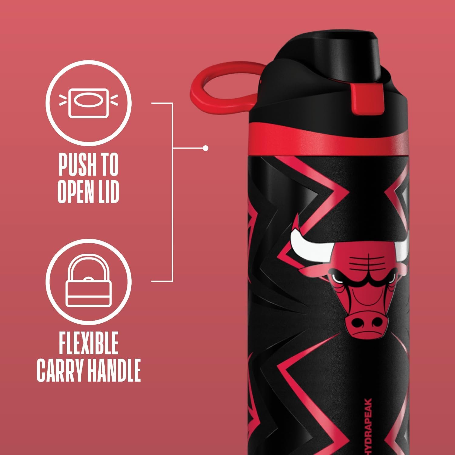 Hydrapeak x NBA Officially Licensed Chicago Bulls Oasis 20 oz Insulated Kids Water Bottle, Stainless Steel Water Bottle Kids with Chug Lid, Push Button