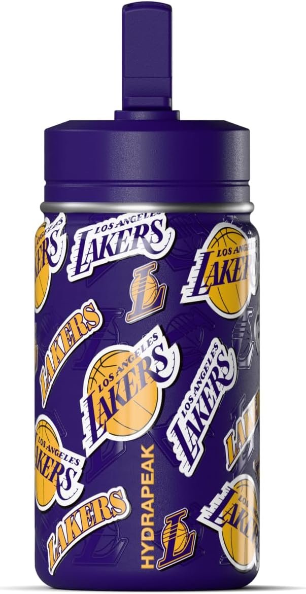 Hydrapeak x NBA Officially Licensed Los Angeles Lakers 14oz Mini Kids Water Bottle with Straw Lid and Handle Reusable Stainless Steel Double Wall Insulated Spill Proof Sports Gift for Boys Girls