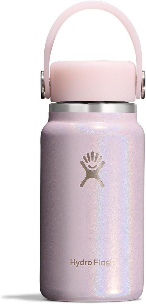 6.7 OZ GLIMMER PINK MICRO HYDRO: Fresh from Hydro Flask Japan, the Micro Hydro water bottle delivers 6.7 oz of hot and cold in a mini Hydro Flask. Pop it in your pocket, clip it on a bag, fit in a lunch box, the tiny size sits easily in the palm of your hand.