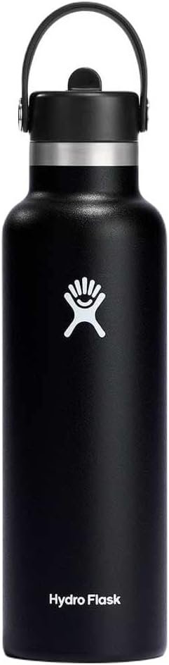 HYDRO FLASK – Water Bottle 621 ml (21 oz) with Flex Straw Cap – Vacuum Insulated Stainless Steel Reusable Water Bottle – Leakproof Lid – Hot and Cold Drinks – Standard Mouth – BPA-Free – Black
