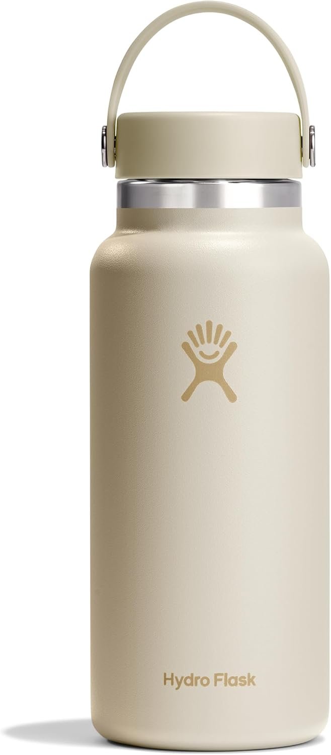 32 OZ COCONUT CREAM BOTTLE: Fill and refill with the Hydro Flask Wide Mouth insulated water bottle with leakproof cap. With a comfortable, flexible handle, the bottle is easy to grab and take anywhere. Double-wall insulation keeps drinks cold up to 24 hours and hot for 12 for ideal refreshment.