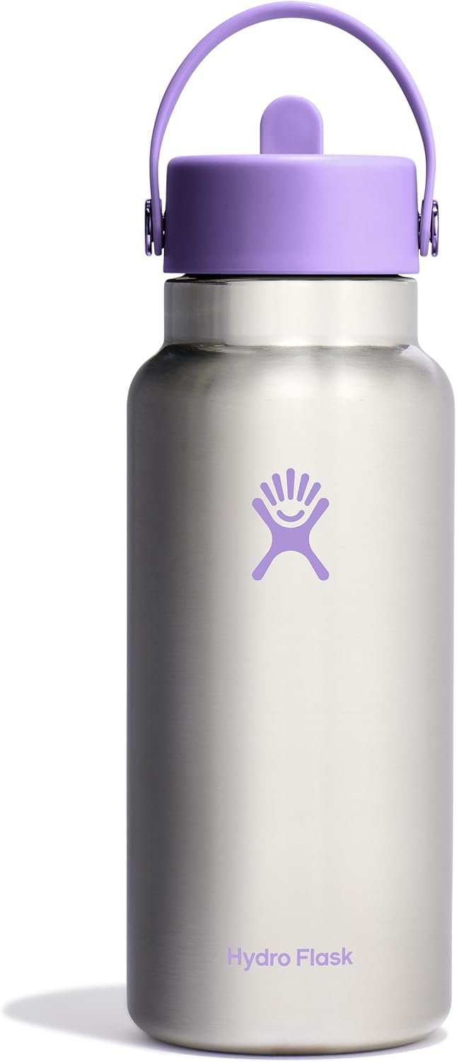 Hydro Flask Water Bottle – Insulated Stainless Steel – Wide Mouth Flex Straw Lid, Non Spill, Leakproof and Refillable in 32 Oz Stainless Steel Violet