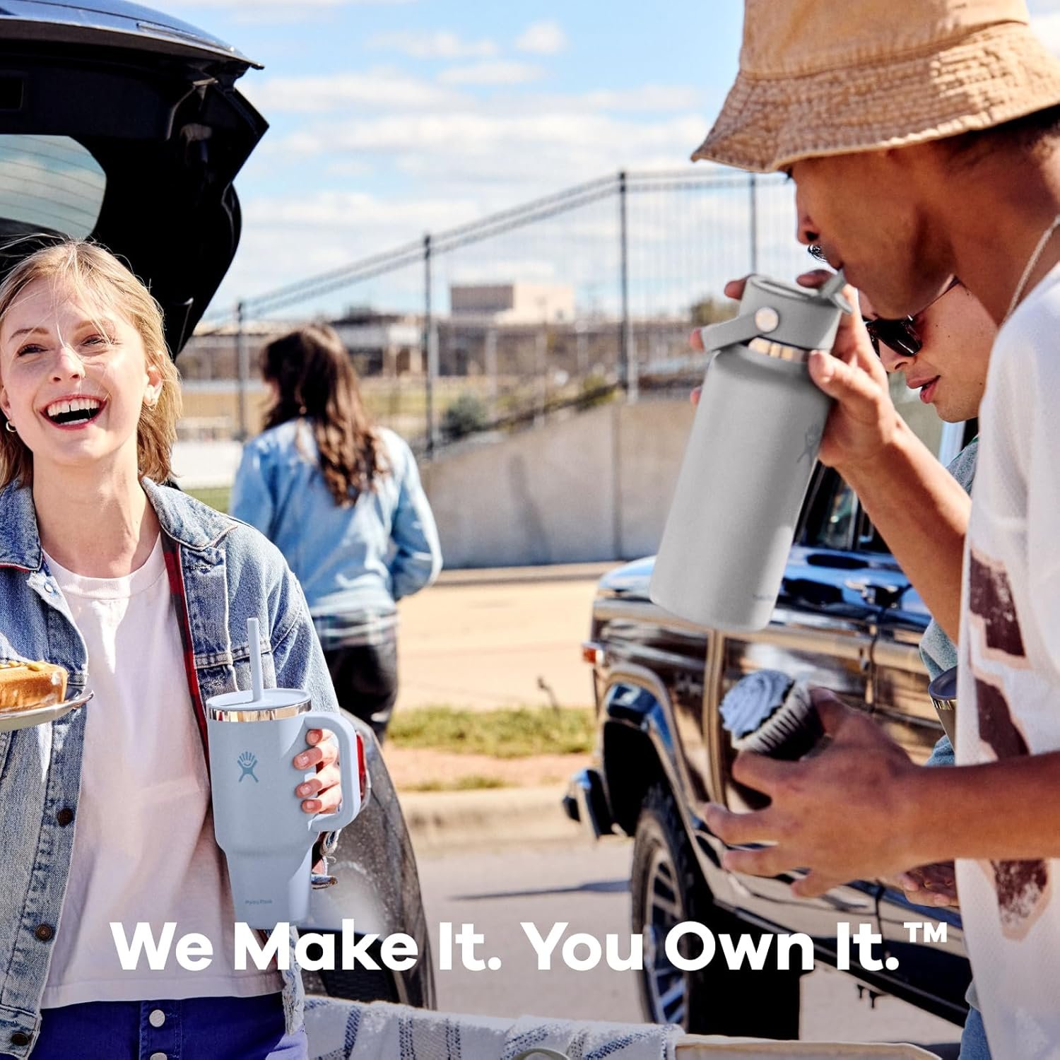 Flip it and sip it with the Hydro Flask 32 oz Wide Mouth Bottle With Flex Straw Cap. With a comfortable, flexible handle, the reusable water bottle with closeable, leakproof straw cap is easy to open and close with one hand, for on-demand hydration. Double-wall insulation keeps drinks cold up to 24 hours for cool refreshment. The insulated bottle easily fits ice cubes and is dishwasher safe. 24 hours cold. TempShield® double-wall vacuum insulation. Leakproof when closed. Won’t retain odor or leftover flavor. Wide Mouth opening is ice-cube friendly. BPA-Free. Dishwasher safe. Easy to clean by hand or dishwasher. Stays clean and colorful. Flex Straw Cap not intended for use with hot liquids. Not for use on a stove, in a microwave or freezer. Keep hot drinks out of the reach of children. Bottle fits all Wide Mouth caps and lids, including the Flex Chug Cap, Flex Sip Coffee Cap, Flex Straw Cap, Flex Cap and Stainless Flex Cap. 32-40 oz Flex Straw Bottles fit Medium Bottle Boot. 24 oz Flex Straw Bottle fits Small Bottle Boot. All the colors, only from Hydro Flask.