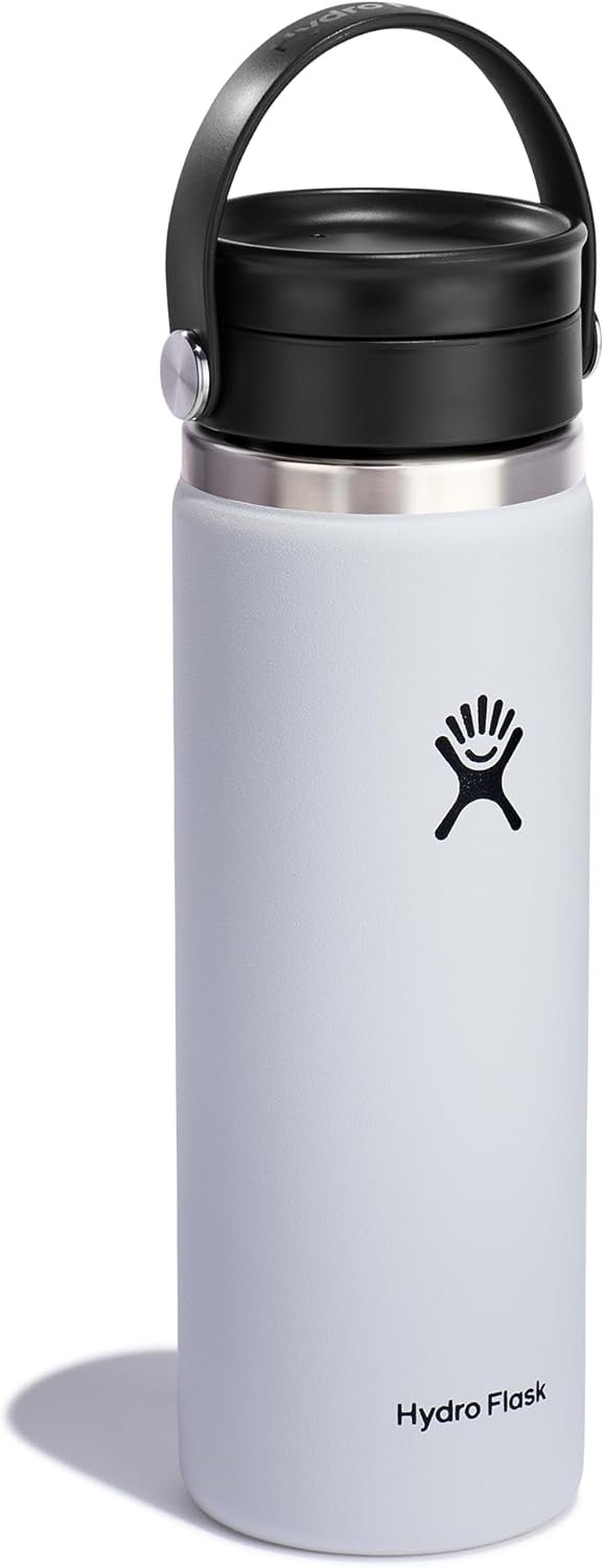 Hydro Flask Wide Mouth Bottle with Flex Sip Lid – Insulated Water Bottle Travel Cup Coffee Mug White 20 oz