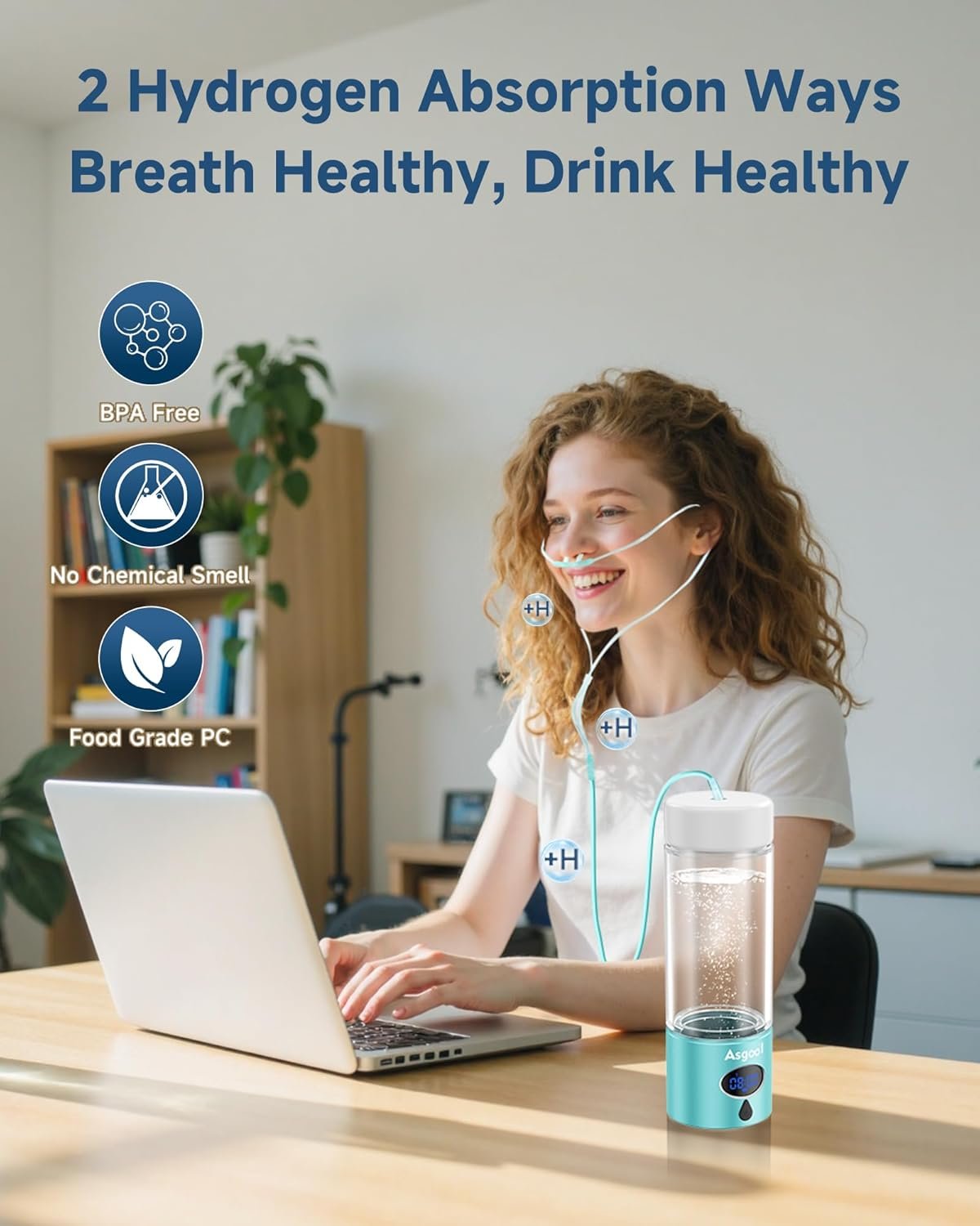 Premium Quality & Safety: Crafted with a glass exterior and aluminum alloy shell, our hydrogen water bottle features a stainless steel and food-grade silicone interior for exceptional durability and leak-proof performance. Comes with a silicone lanyard for effortless portability – perfect for home, office, or travel hydration.