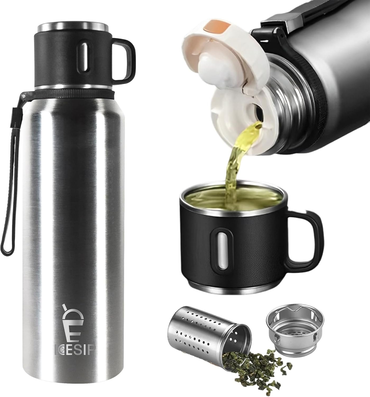 Icesip Stainless Steel Insulated Bottle, 27oz with cup Vacuum Insulated Water Bottle, Thermo for Hot Drinks/Cold Drinks,24-Hr Insulation Commute, Travel