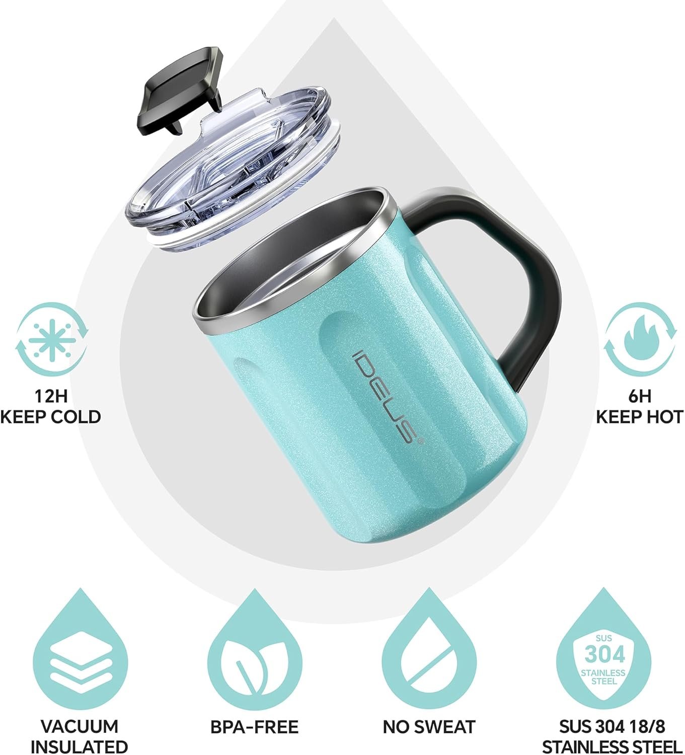 Ideus 16 oz Coffee Cup, Stainless Steel Coffee Travel Mug, Spill Proof Tea Mug with Handle and Lid, Lightweight and Durable, Great for Office Home and Outdoor Use, Sky Blue-FUJI FLOW