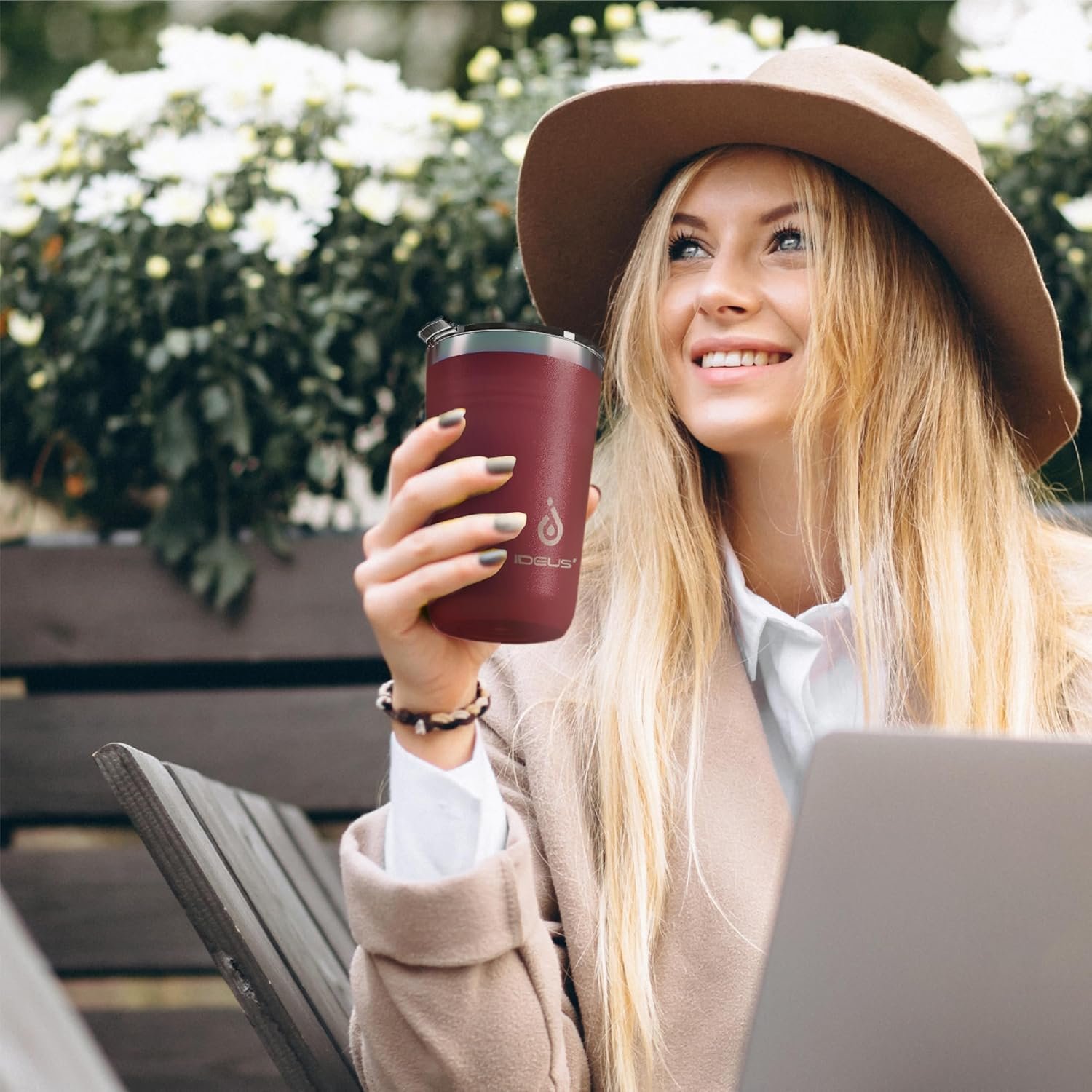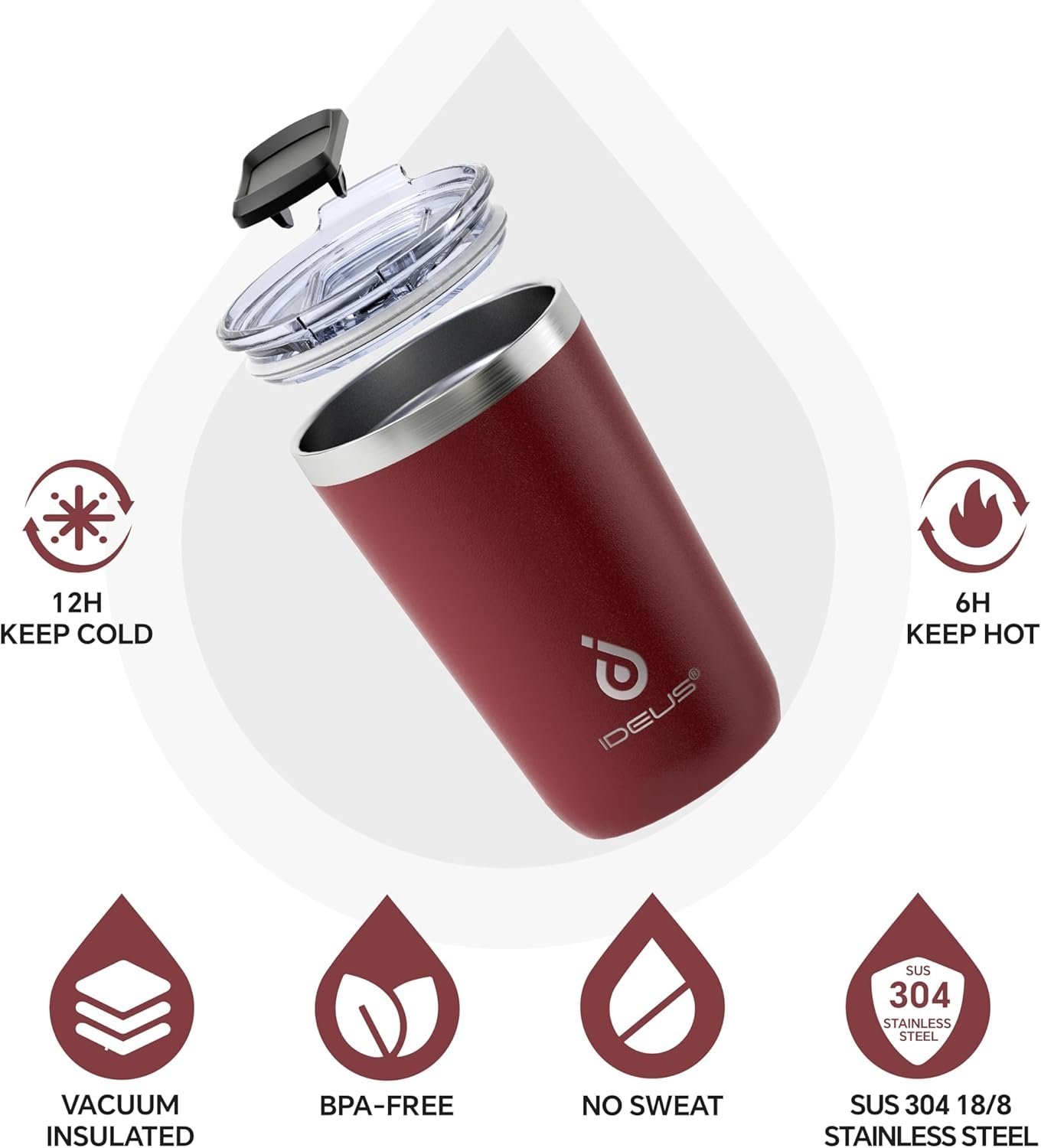 Ideus 20 oz Tumbler, Travel Coffee Mug with Splash Proof Sliding Lid, Double Wall Stainless Steel Vacuum Insulated Coffee Mug for Home and Office, Keep Beverages Hot or Cold, Blood Red