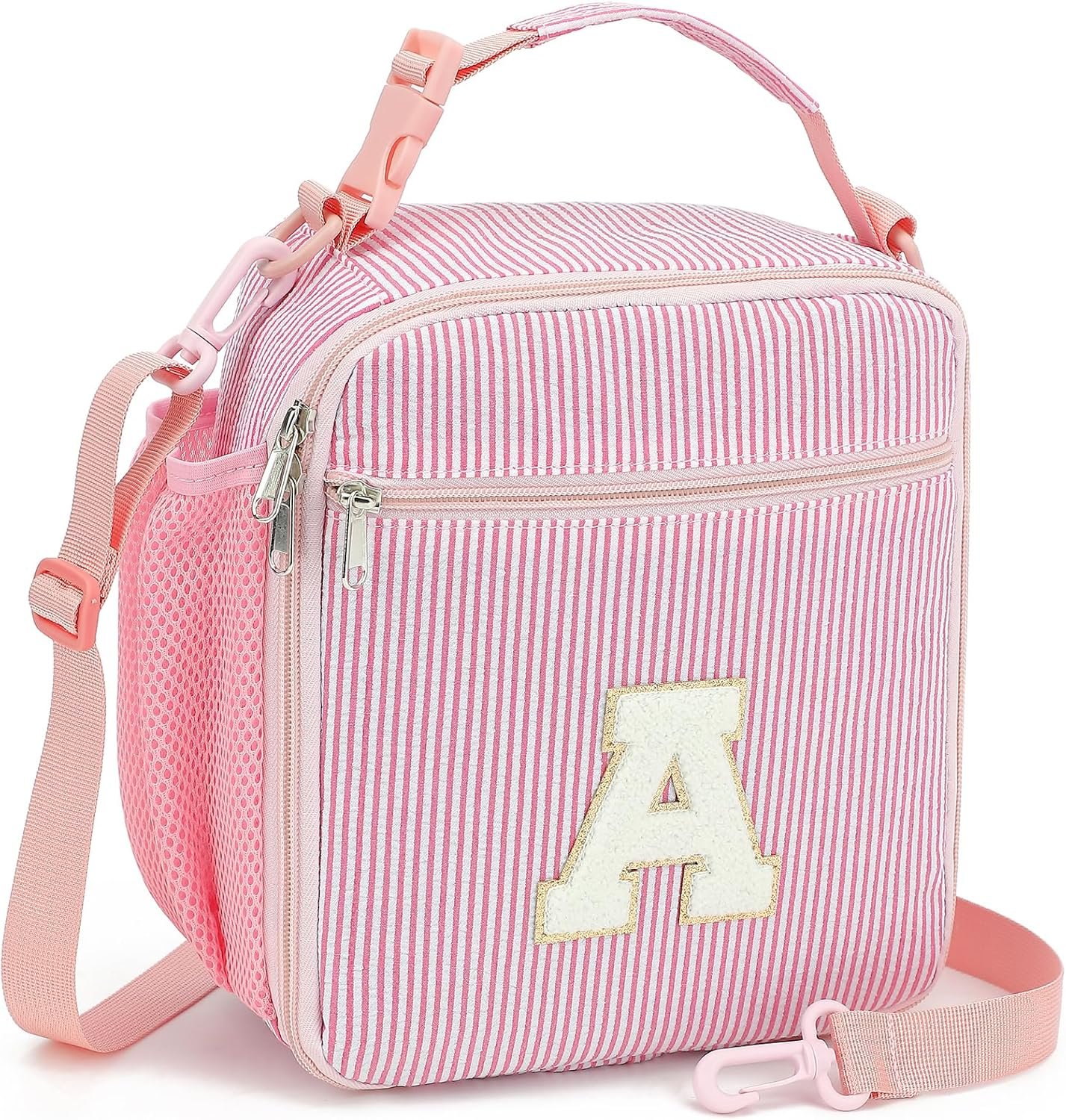 Initial Lunch Bag for Girls Kids, Cute Insulated Lunch Box Gift for School Personalized Gifts for Teen Girl (Pink A)