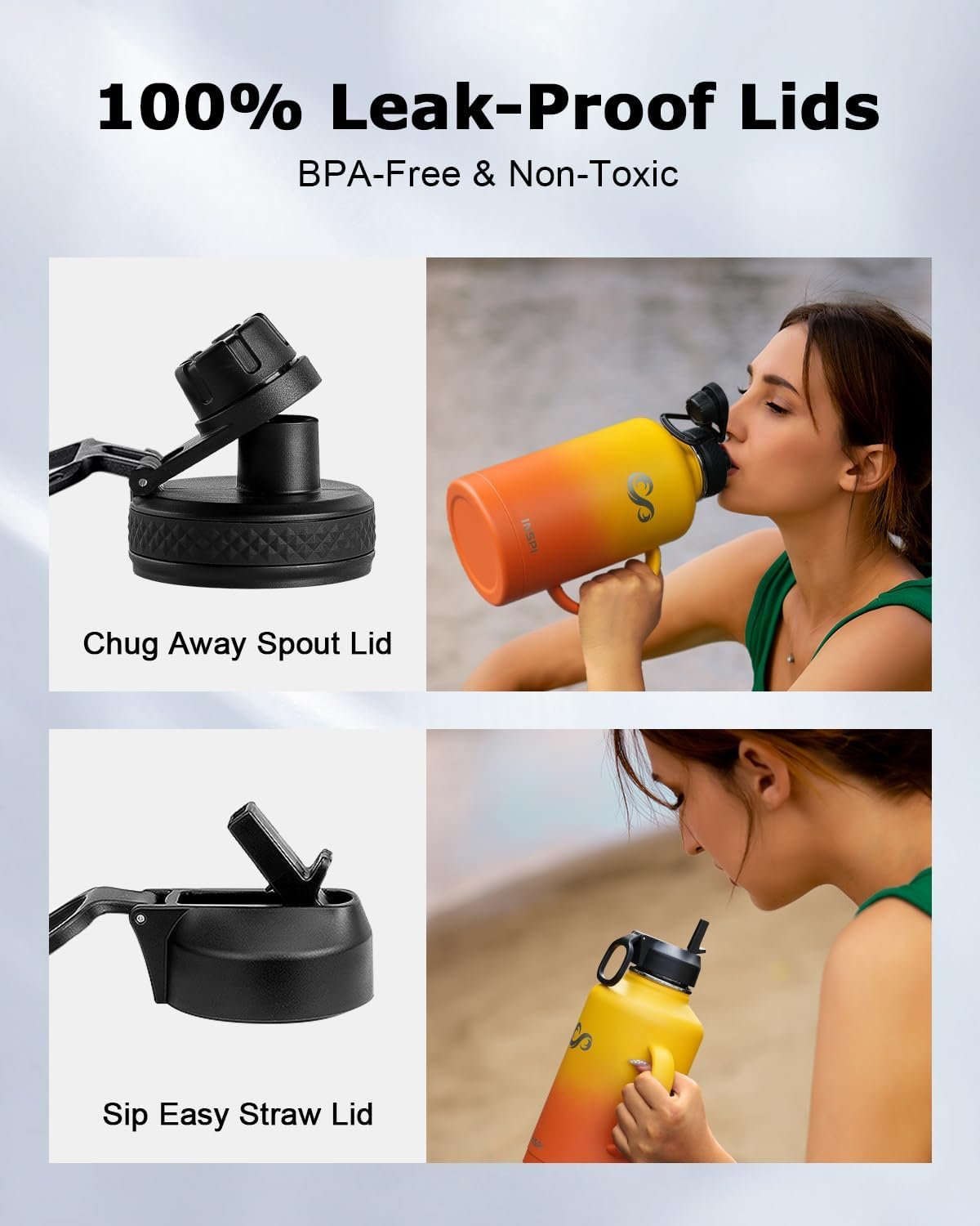Leak-Proof Assurance: The BPA-Free, non-toxic straw lid and spout lid both ensure a 100% leak-proof and splash-proof experience, keeping your beverages secure. You can choose the lid for your sports water bottle based on your mood