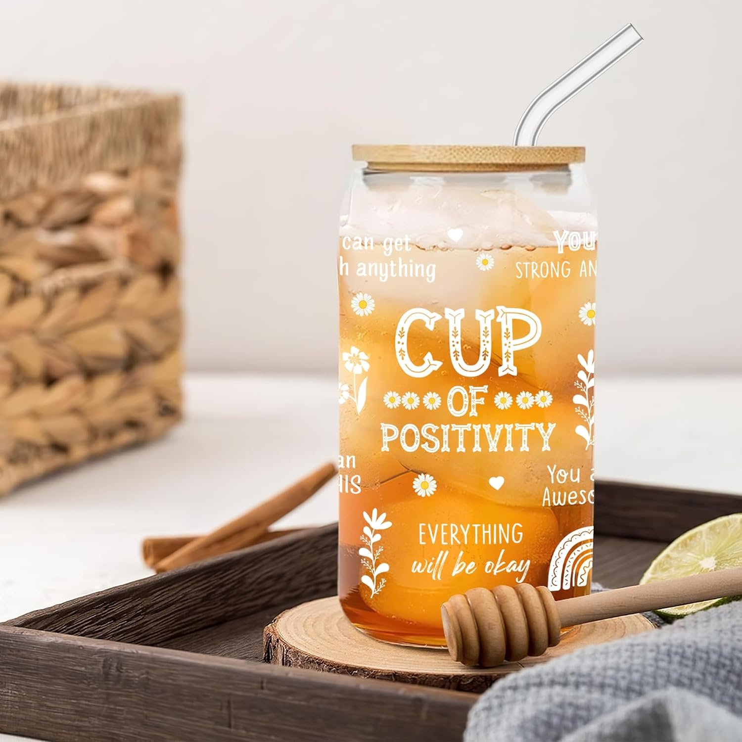 Perfect for gifting: This 16oz glass can comes with a bamboo lid and a reusable glass straw, making it a thoughtful and stylish gift for birthdays, holidays, anniversaries, or any special day.