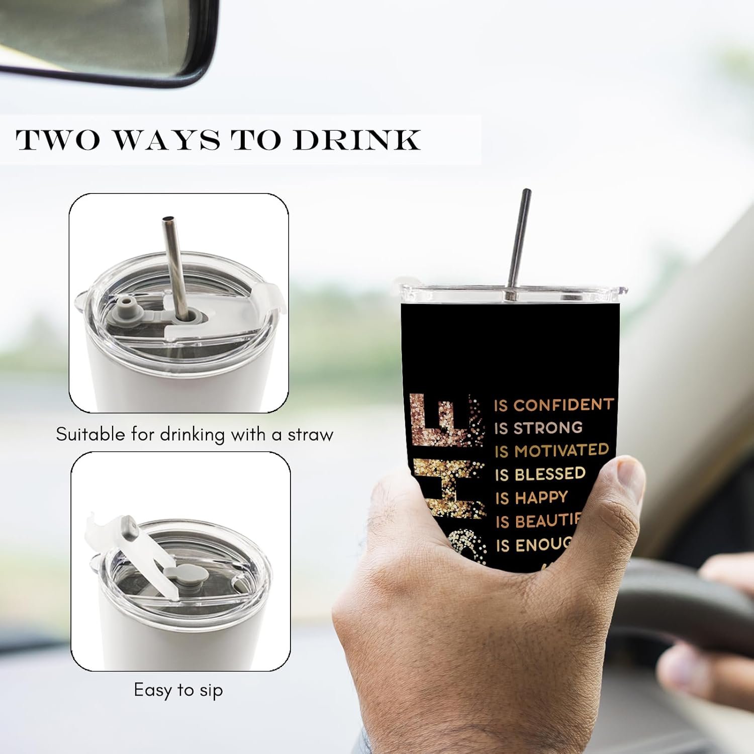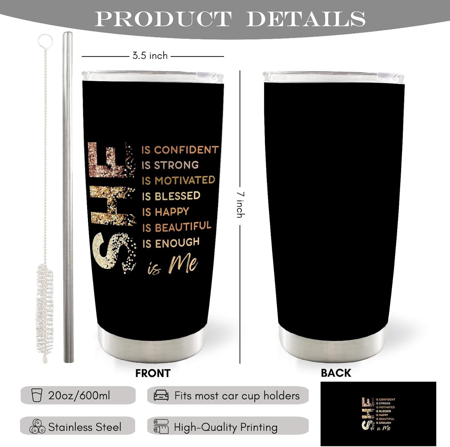 Inspirational Woman Affirmation 20oz Travel Coffee Mug Tumbler, Feminist Female Women Empowerment Gifts, Motivational She Is Me Water Stainless Steel Tumbler with Lid and Straw Drinkware