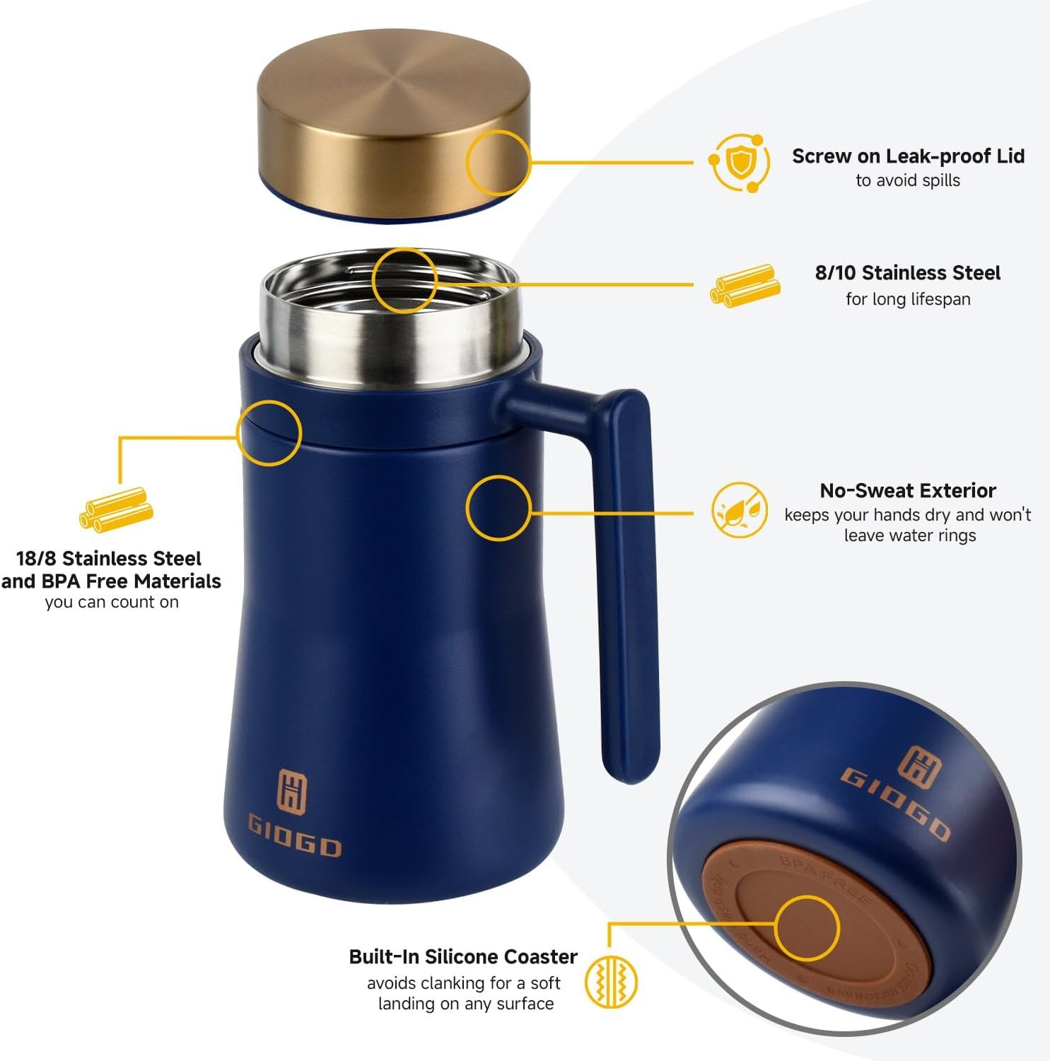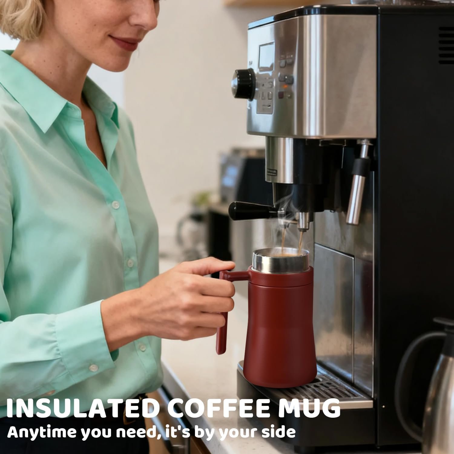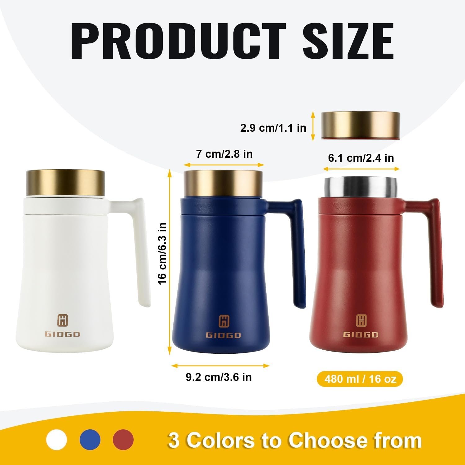 Why Choose This Coffee Mug – This insulated mug is made of 18/10 stainless steel, with a spiral leak proof rim, ergonomic handle, unique design, and high-end color options (retro red, white, and blue are optional), making it an irresistible coffee mug for you