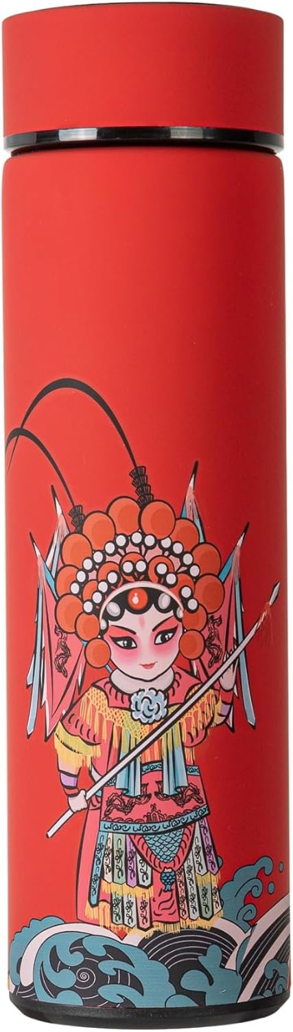 Insulated Coffee Tea Travel Thermos Mug Water Bottle with Removable Strainer and Temperature Featuring Chinese Opera Singer Design – 16.9 fl oz (Red)