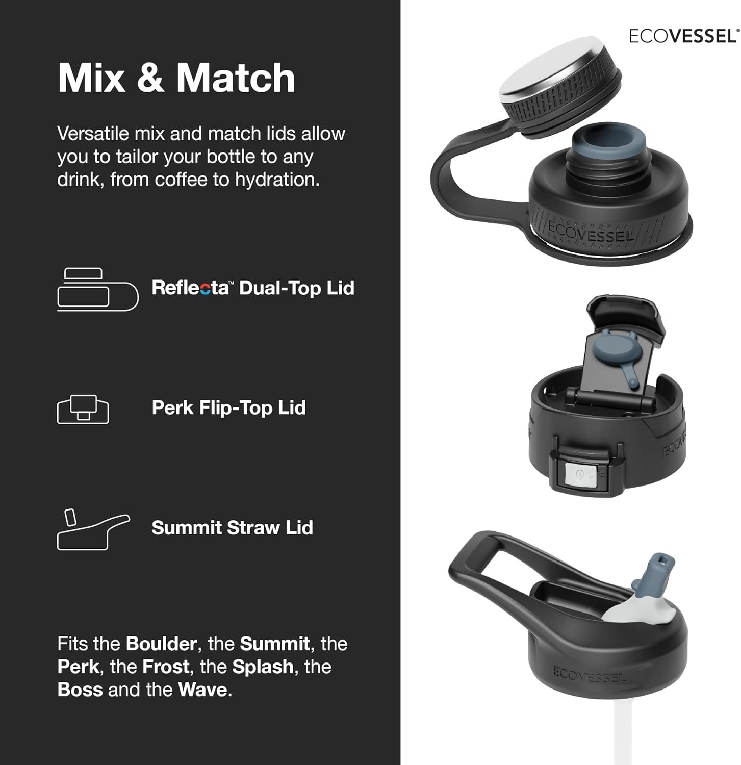 Interchangeable lids allow you to easily switch out the lid to suite your needs and preferences.