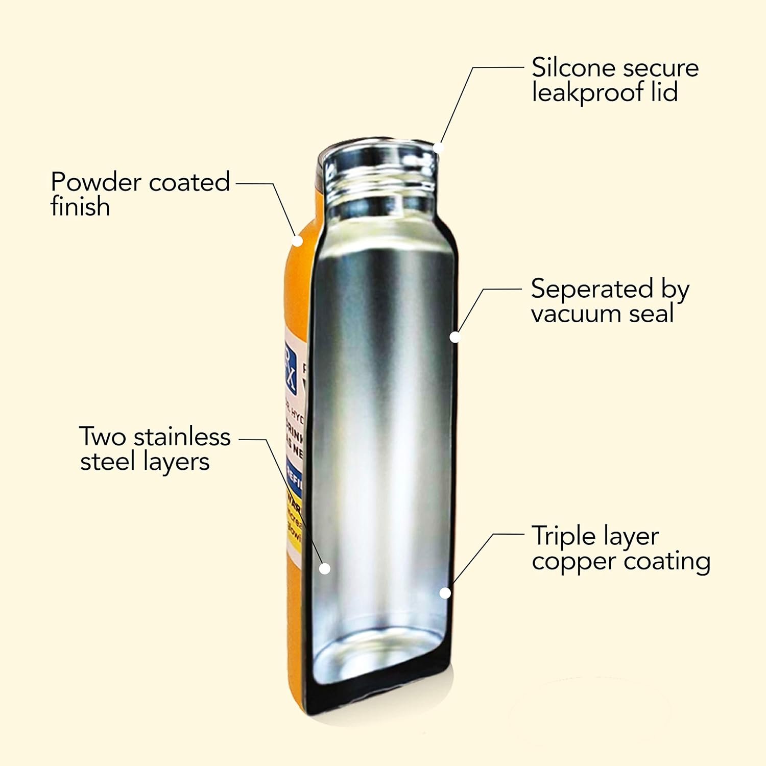 Triple layer copper technology: two stainless steel layers, one wrapped in a copper coating, separated by vacuum seal