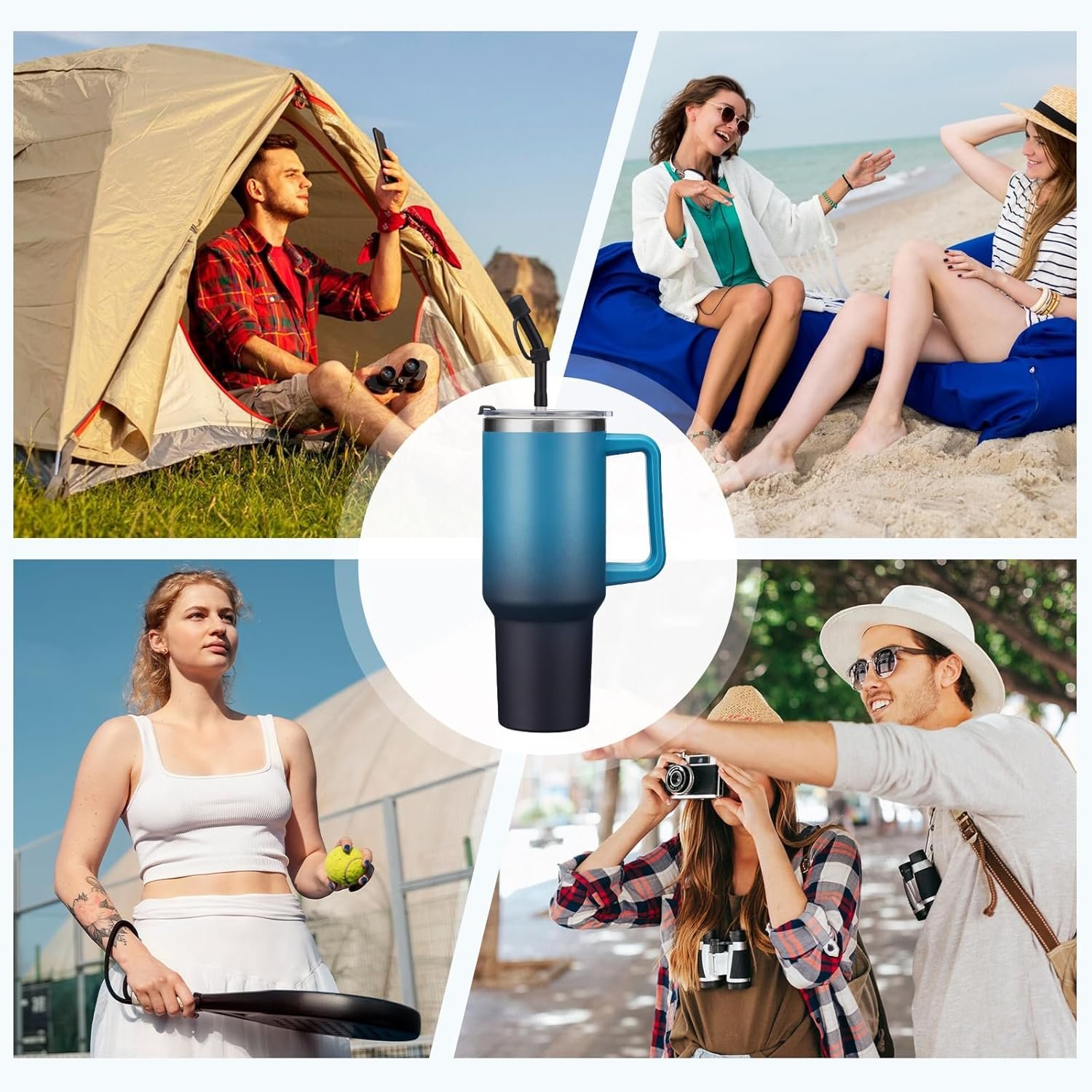 Super Capacity & Long-Lasting Temperature Control: Stay refreshed with fewer refills—keeps drinks cold for 34 hours and hot for 10 hours thanks to triple-wall vacuum insulation. The slim base fits most car cup holders, while the ergonomic handle ensures easy carrying to work, the gym, or on trips