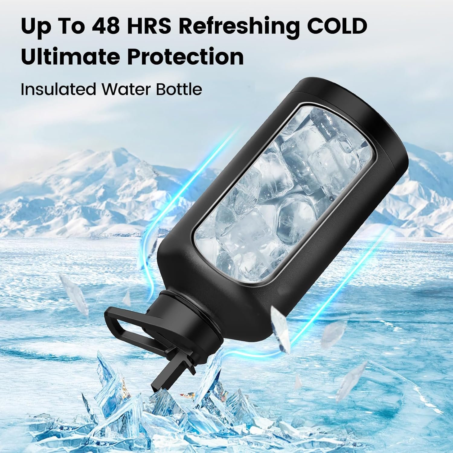 Insulated Water Bottle 128 oz, Triple Wall Vacuum Stainless Steel(Cold for 48 Hrs),Leak Proof & BPA-Free,Half Gallon Water Bottle with Reflective Paracord & Flip Straw for Sports & Travel, Black
