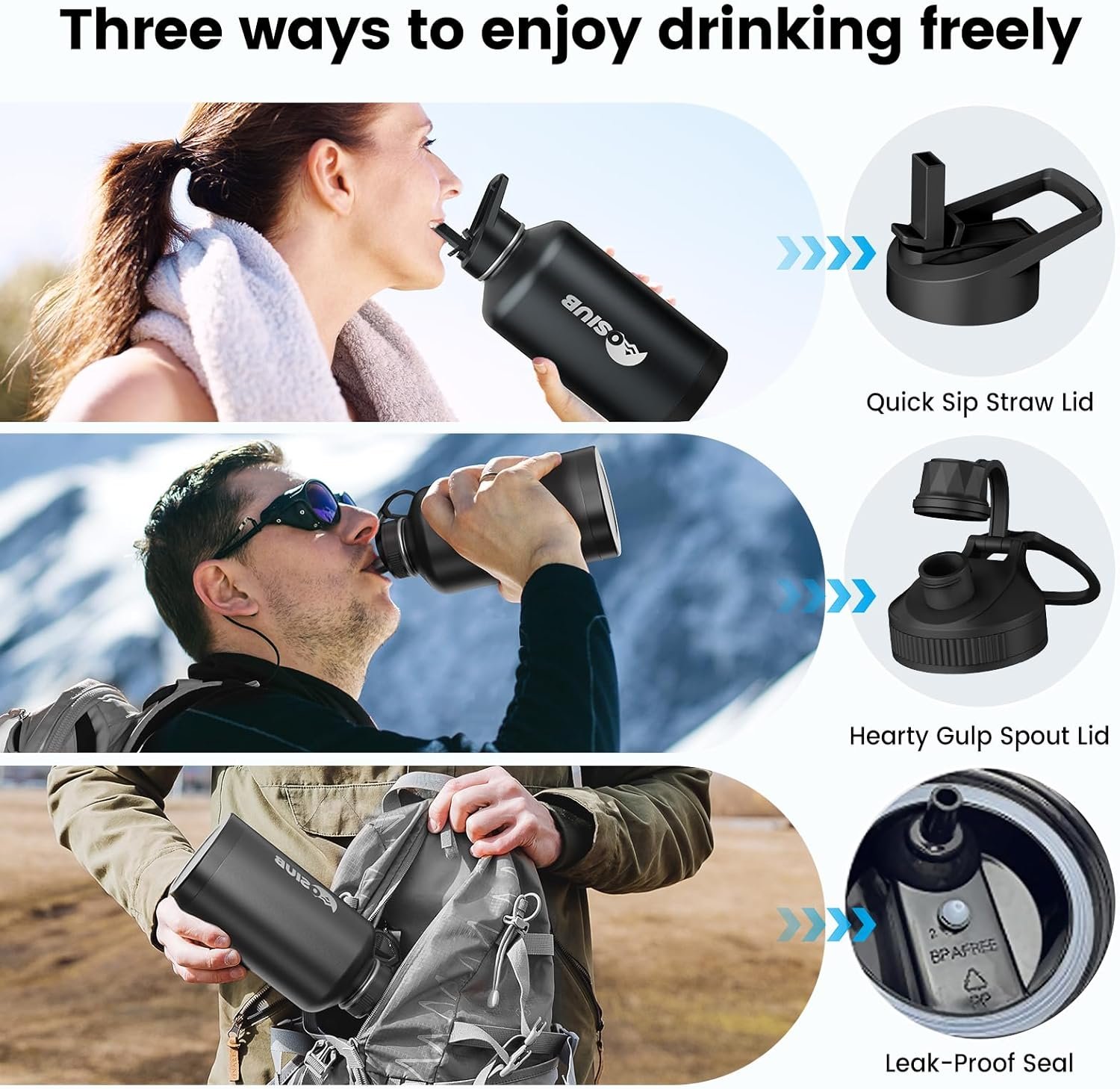 Adventure-Proof Sealing: 64 oz Water Bottle features an advanced leak-proof design with two convenient lid options—a direct-drink lid for quick hydration and a straw lid for easy sipping. Both ensure a secure, airtight closure, making it ideal for hiking, workouts, and on-the-go adventures. Keep your beverages fresh and secure, so you can stay focused on your journey.