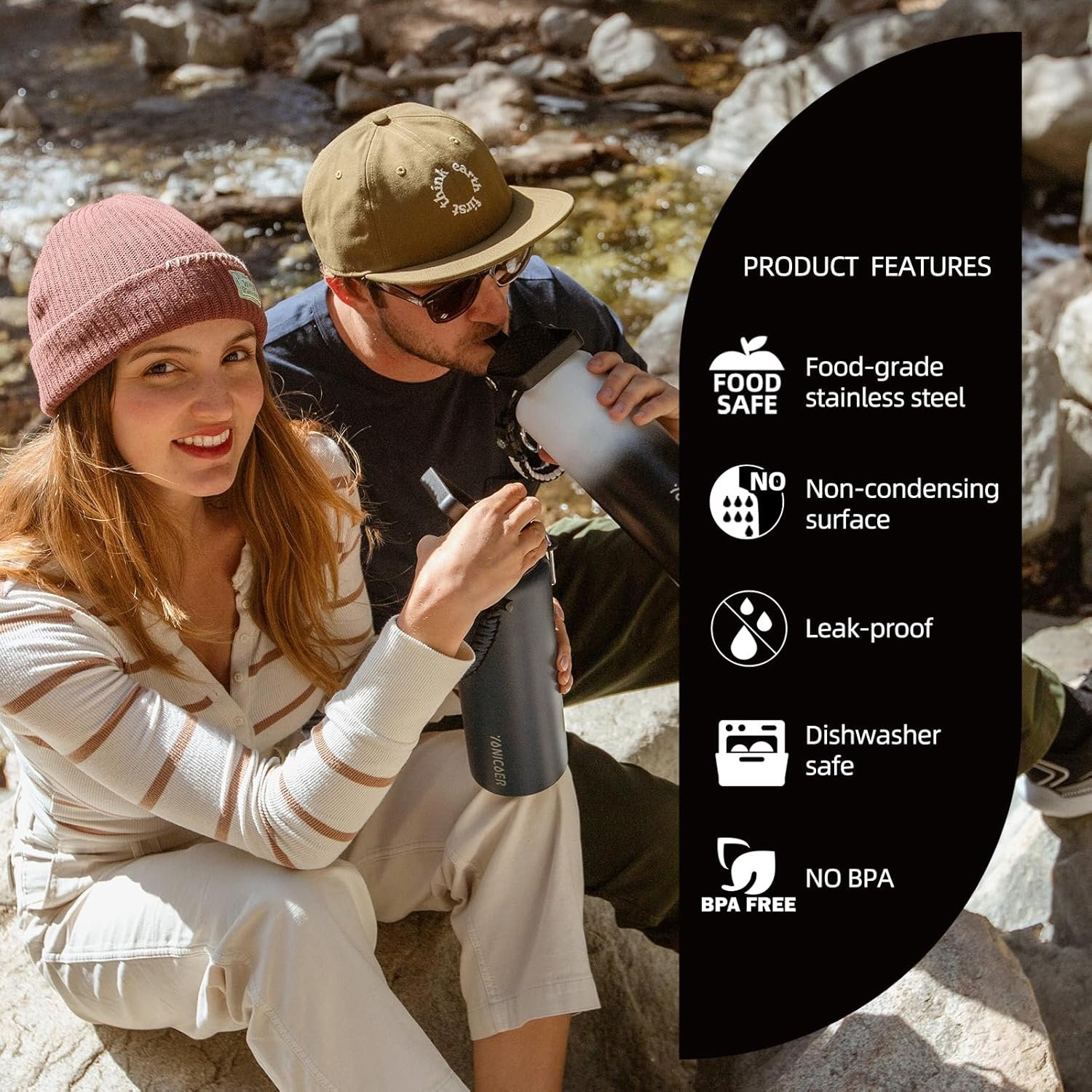 Triple layer insulation: YONICOER water bottle features copper-plated triple-layer vacuum insulation, tested to keep your drinks icy cold for up to 24 hours, or warm for 12 hours, boost your fitness level with this water bottle, ensuring you enjoy your favorite beverage at the most suitable temperature all day long