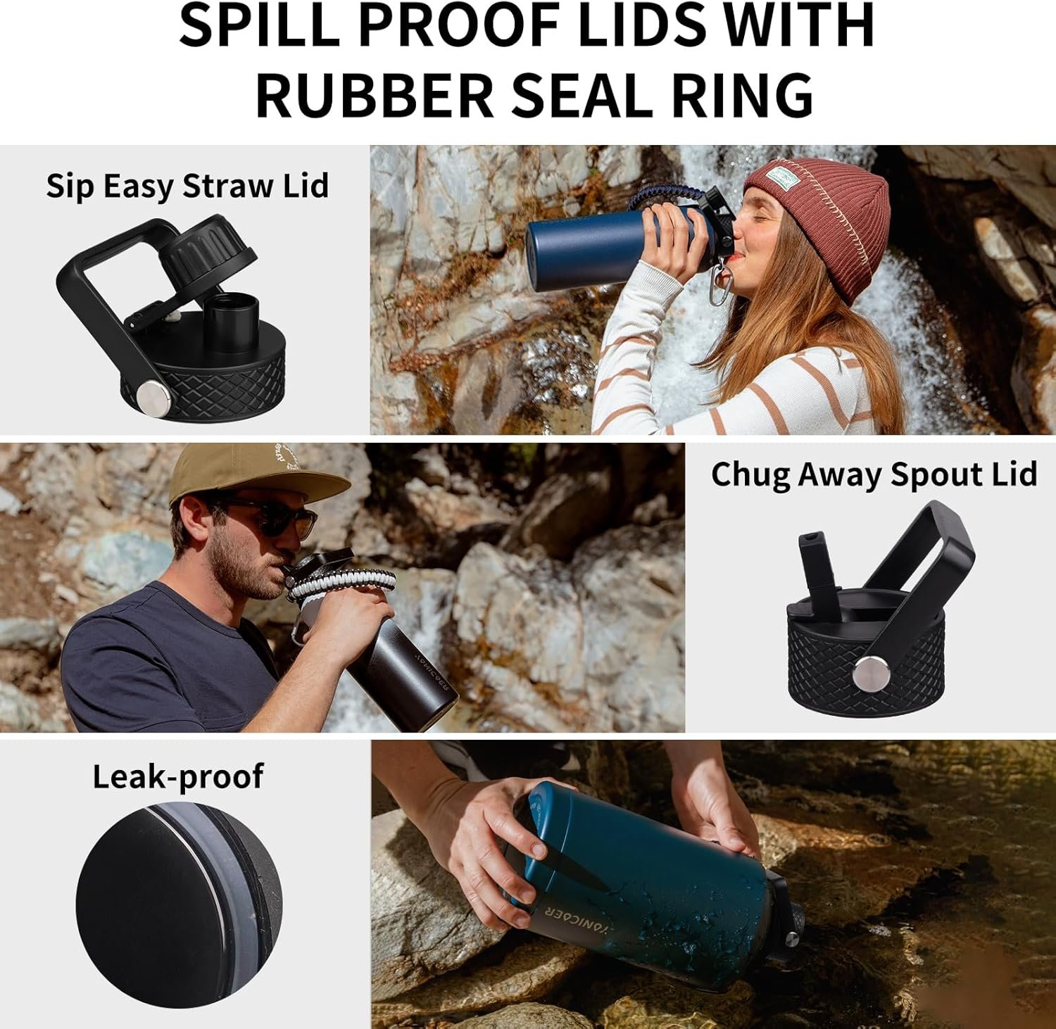 What you get: We provide continuous after-sales service and 100% customer satisfaction to prevent any leakage or bonding failure. Your purchase includes: YONICOER water bottle, 3 lids, paracord handle, 1 brush, 2 straws, 1 straw brush, 1 cup sleeve