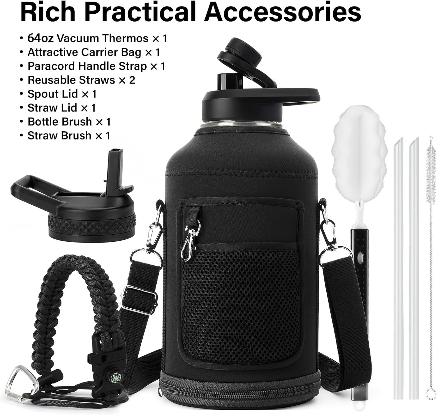 CONVENIENT ACCESSORIES FOR EASY CLEANING AND USE:Say goodbye to cleaning hassles! This bottle comes with replacement straws, straw brush, and bottle brush to ensure your bottle stays spotless, no matter how often you use it. The wide-mouth design makes it easy to clean, and it’s also perfect for adding ice cubes for a refreshing cold drink. With these thoughtful accessories, keeping your bottle clean and ready for your next adventure is as simple as it gets.