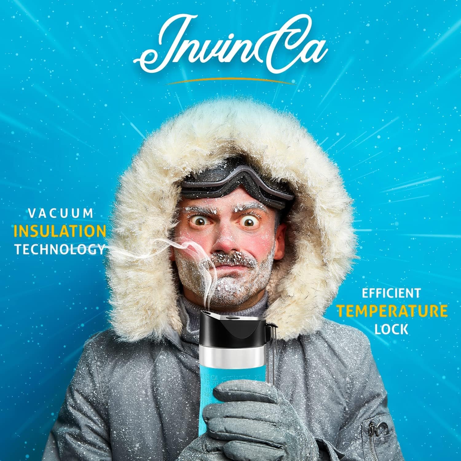 ALL DRINKS WELCOME. The vacuum-insulation technology used in manufacturing INVINCA ONE-CLICK tumblers, retains beverages’ temperature so that your drink stays hot or stays cold for prolonged hours. Up to 8 hours for hot drinks, 12 hours for cold drinks and 24 hours for ice drinks.