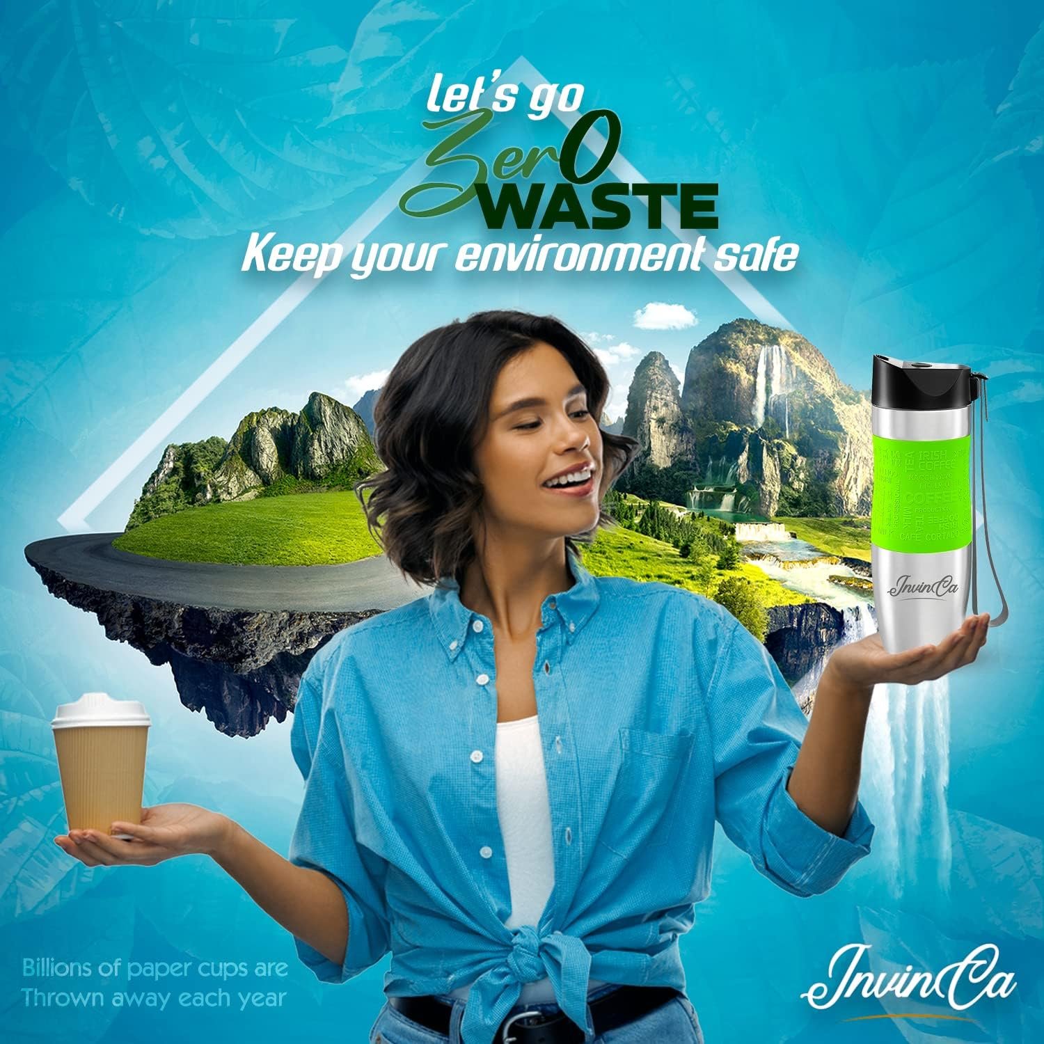 What type of to-go mugs are you looking for? A fancy unique-looking, easy to clean, spill proof, leakproof, easy to carry, temperature retaining, or durable long-lasting travel mug!!! INVINCA ONE-CLICK high-quality tumbler has combined all of these features into its innovative smart and modern travel mugs’ design with its calculated measures which fit most single-serve brewers and car cup holders. This double-wall stainless steel vacuum insulated thermal technology provides the ultimate travel coffee mug, as it keeps beverages/liquids/drinks hot for up to 8 hours, cold for 12 hours, and iced for 24 hours. The properly threaded flasks with their stronghold lids enable you to safely shake your metal cups in case you want to mix those ingredients that settle down easily with no leaking or spilling. Our easy-to-clean lids are top-rack dishwasher safe, in addition to the unpainted stainless steel body. Any painted stainless steel bodies are preferred to be hand-washed only. The adjustable strap suits your all-day adventure and enables you to carry your mug hands-free everywhere; From adding a securely hold to easily adjusting and wrapping it around your wrist to attaching it to anything and anywhere.