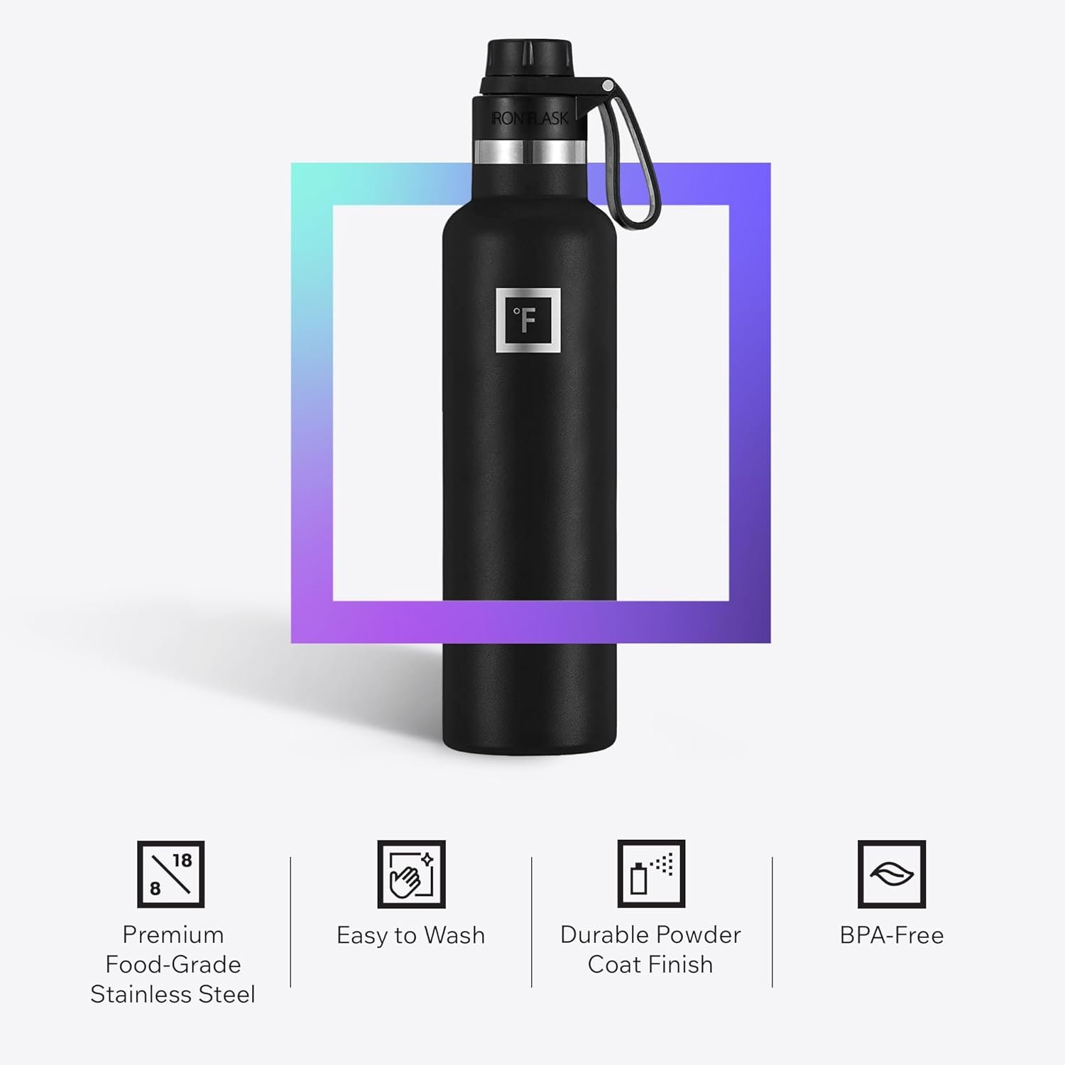 INSULATED SPORTS WATER BOTTLE: Goodbye sweat! The double wall insulation makes the Iron Flask sweat-free! It keeps your drink COLD for up to 24 hours, and HOT for up to 12 hours.