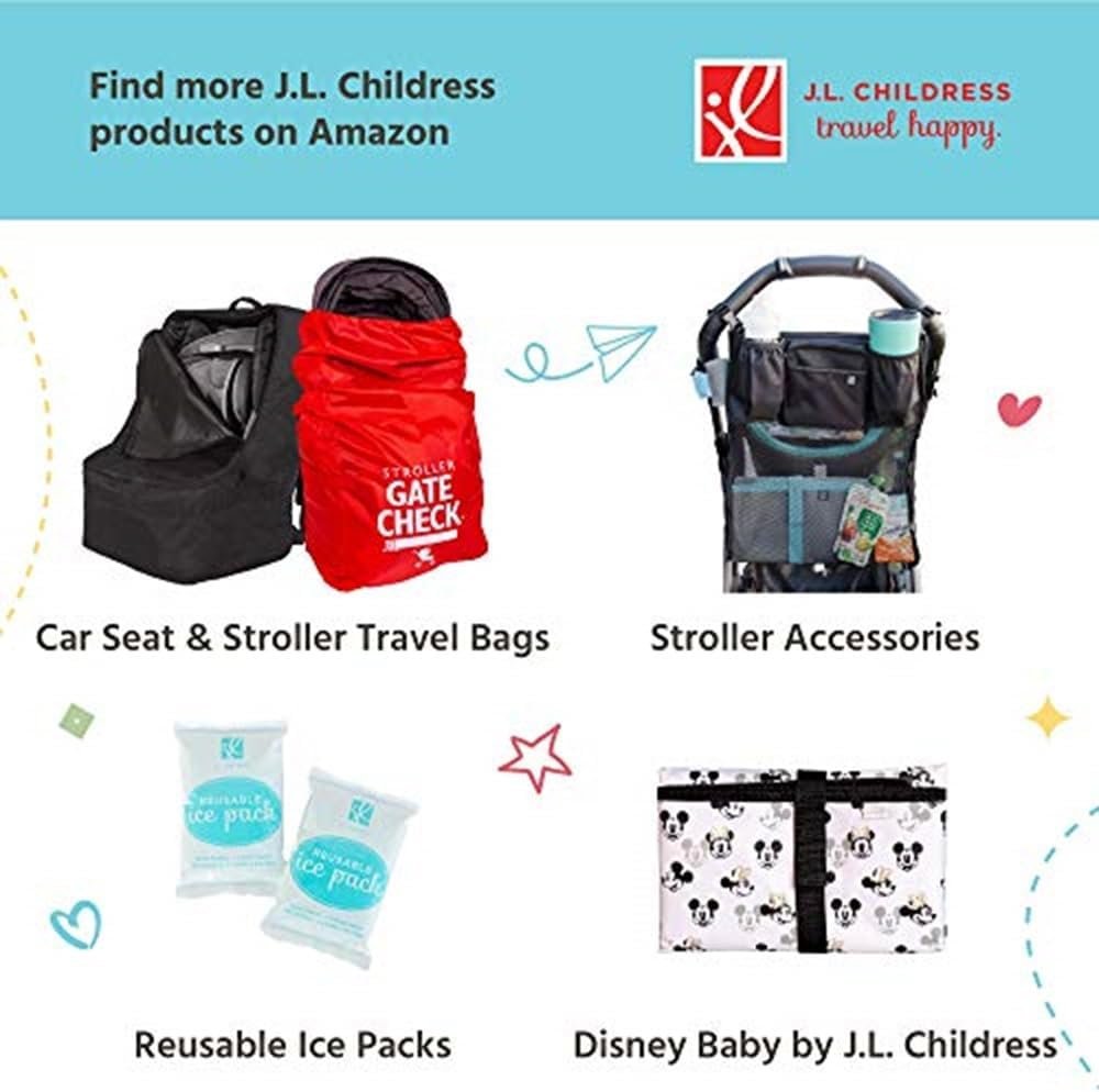 The J.L. Childress Pack N Protect Tote surrounds glass bottles and food jars with thick padding for protection and insulation. Padded bumper shelves easily adjust to hold multiple combinations of bottles and food jars. The Pack N Protect is fully insulated and features an interior mesh pocket to hold utensils or an ice pack. The exterior mesh pocket holds bib, wet wipes or pacifiers. Also includes ID card in clear ID card pocket and an adjustable buckle strap to attach to strollers or diaper bags. The Pack N Protect’s sleek styling makes it compact to fit in a diaper bag or travel bag. We’re the Childress Family – Nice to Meet You! For over 30 years, J.L. Childress has been committed to making your next family adventure a little easier. Our US-based, family owned company is run by moms & dads just like you and we stand behind our products 100%. If you need anything, just give us a call! For adventures around the block or around the world, Travel Happy with J.L. Childress.