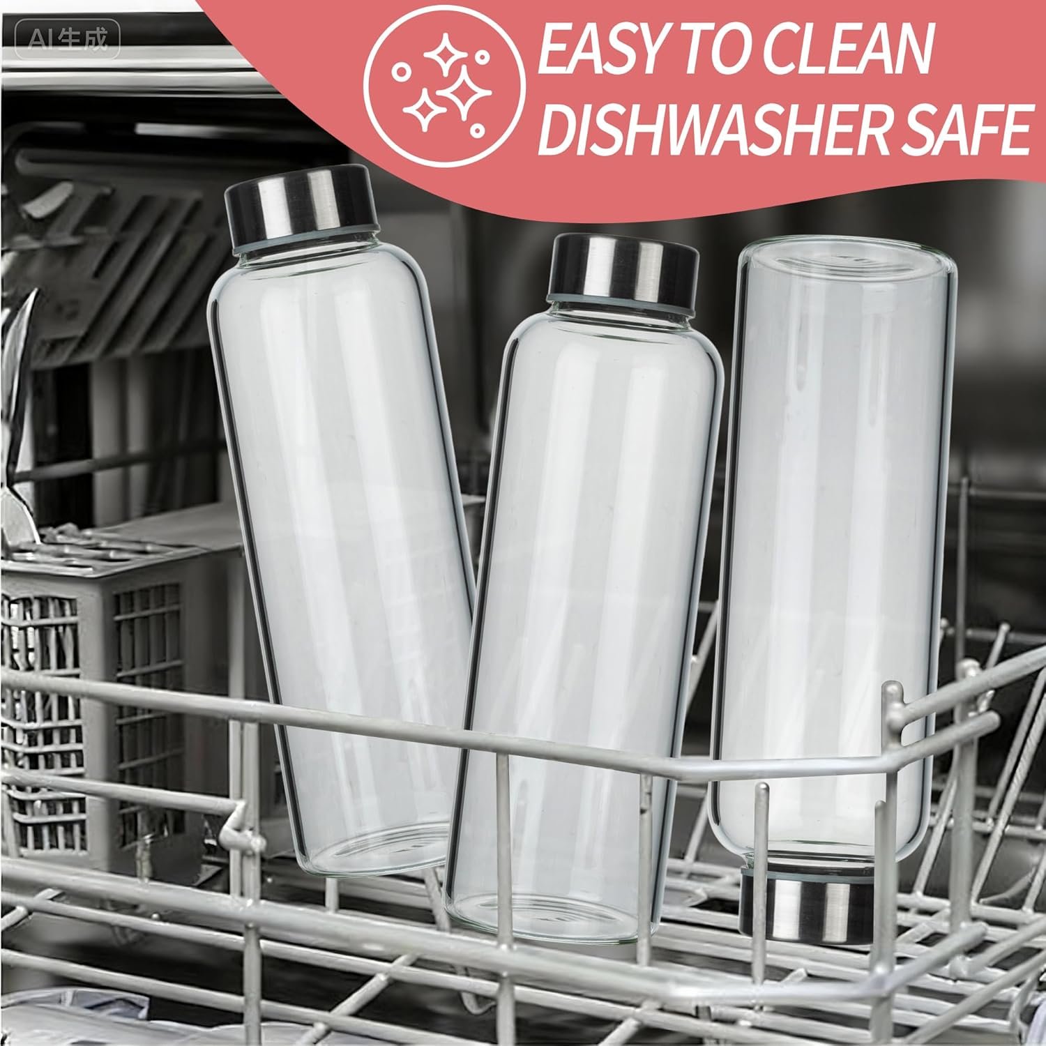Quality and Eco-Friendly Material: Glass water bottles made from thick transparent glass, perfect for both hot and cold drinks without breaking. Glass juice bottles with lids are 100% BPA-free, smooth, odorless, and non-toxic, ensuring your beverages are fresh and safe.