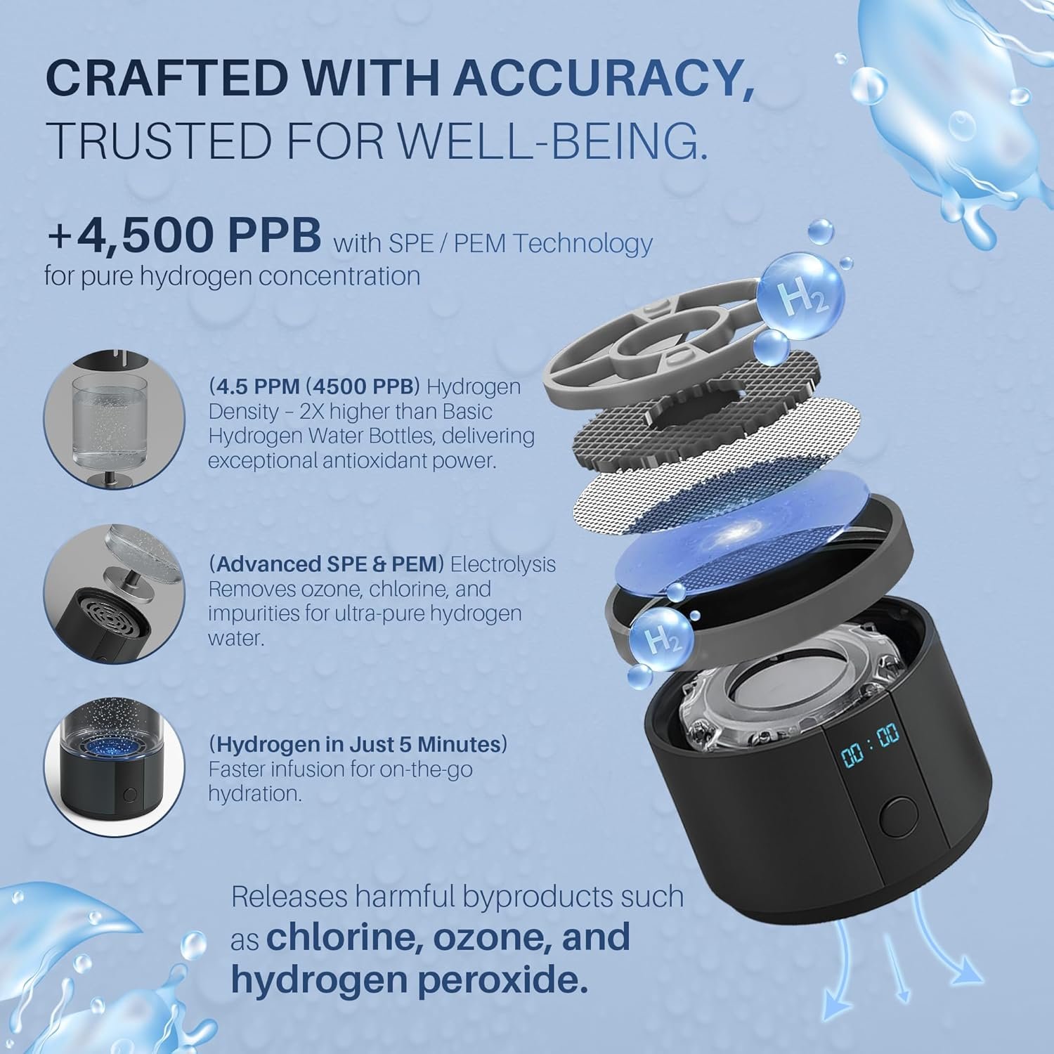 Advanced Hydrogen Water Ionizer: This hydrogen water ionizer transforms normal water into antioxidant-rich hydrogen water. The perfect hydrogen water bottle delivers pure hydration and clean taste for daily use and wellness.