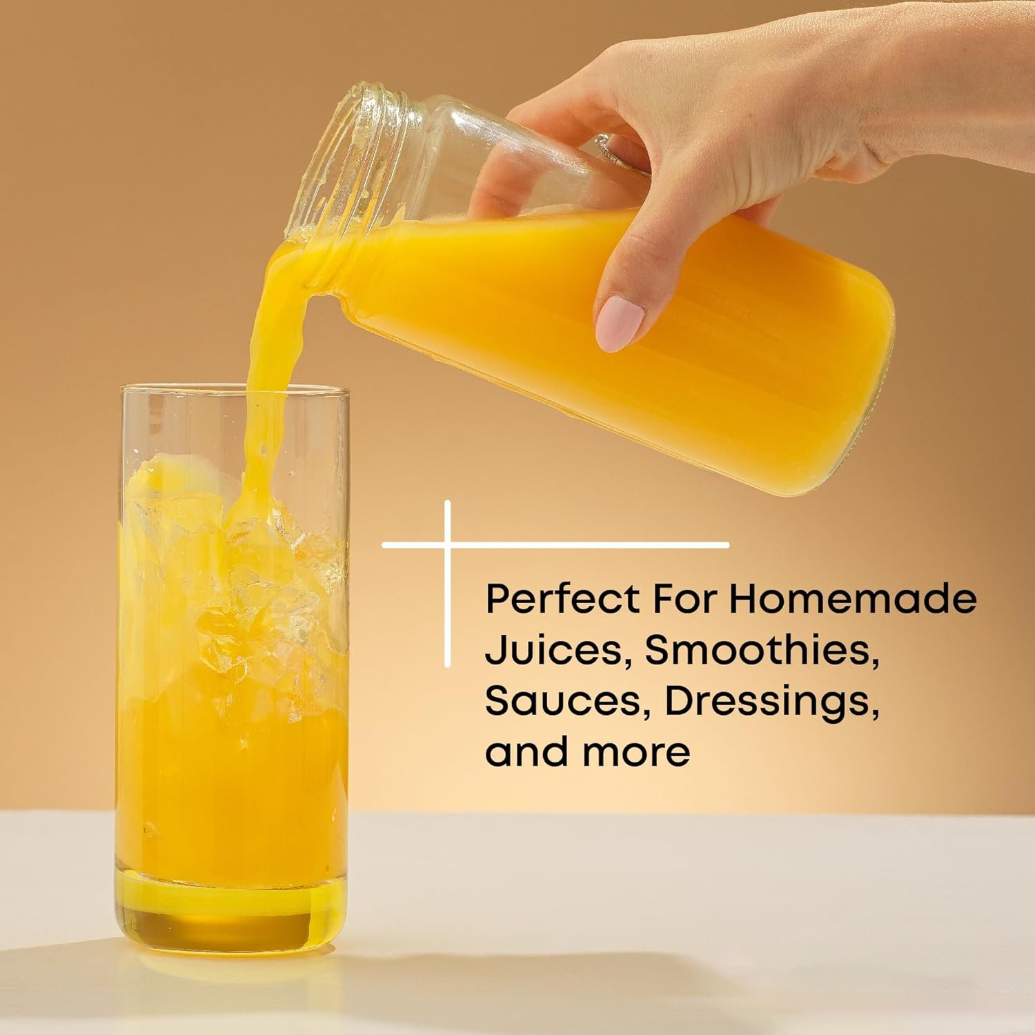 GLASS BOTTLES FOR JUICING AND MORE! Iced coffee, cold brew bottles, milk, smoothie tumbler or orange juice glasses. Anything goes. Aloe Vera water containers? Yep. Iced Tea or Kombucha bottles? Also yes. Meal prep Gazpacho? Great idea! They’re glass storage bottles for liquids of any kind!