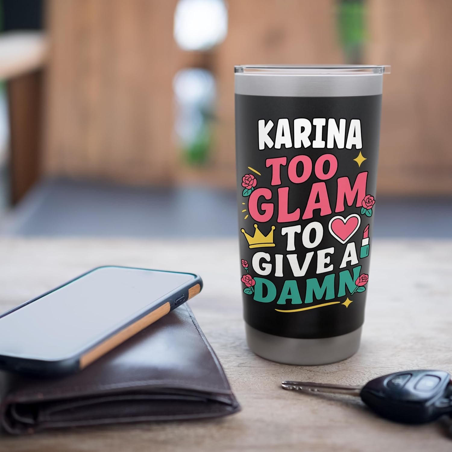 KARINA TOO GLAM TO GIVE A DAMN is a cool personalized Wife, Adult, Mom present for her! This quote sarcasm gag saying is a cute gift for any holiday such as anniversary, Mother Days, Birthday Gift and Christmas gift