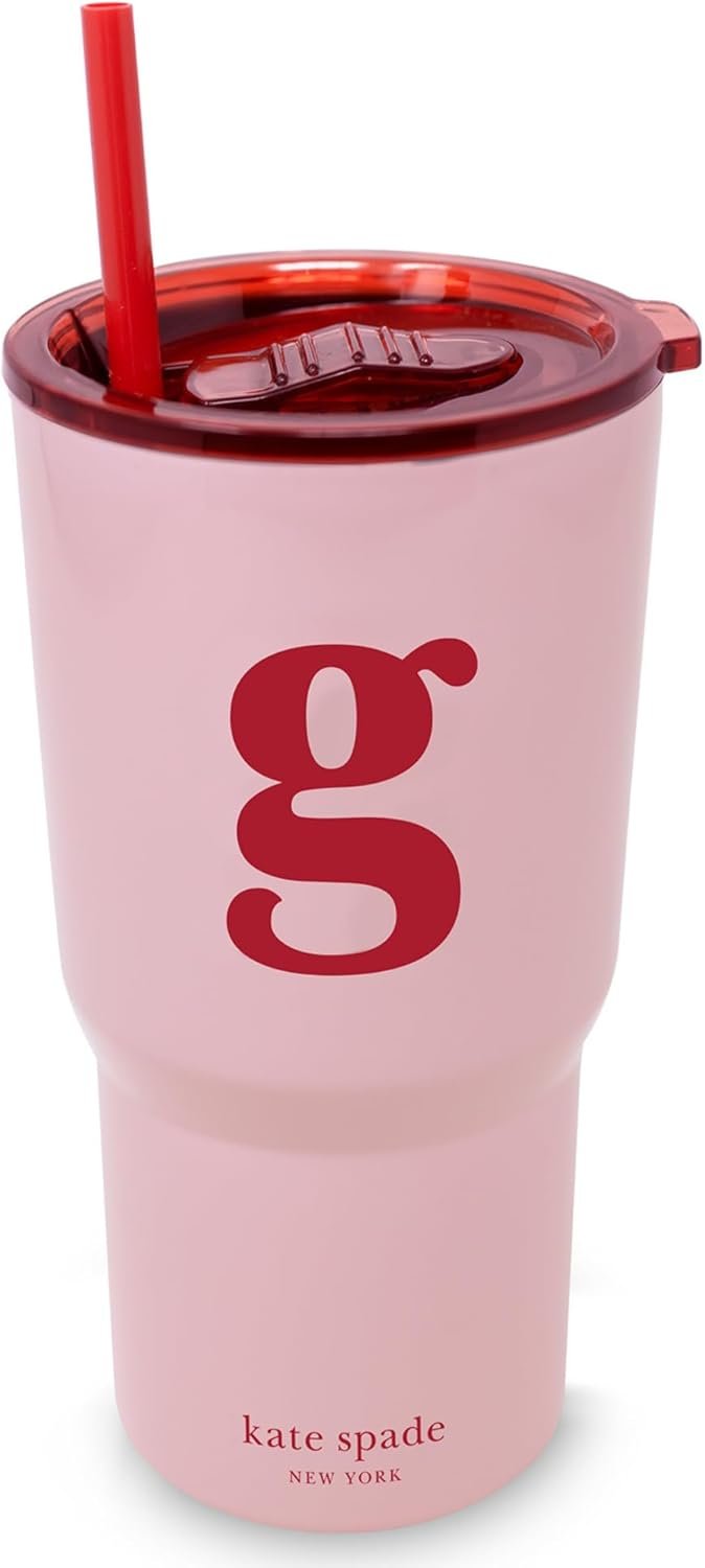 kate spade new york 20 Ounce Insulated Initial Tumbler for Cold and Hot Drinks with Reusable Straw, Stainless Steel Travel Cup with Slide Top Lid (G)