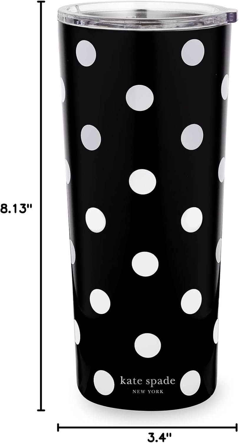 kate spade new york Cute Stainless Steel Mug, 24 Ounce Travel Tumbler, Double Wall Insulated Cup with Lid, Picture Dot (Black/White)