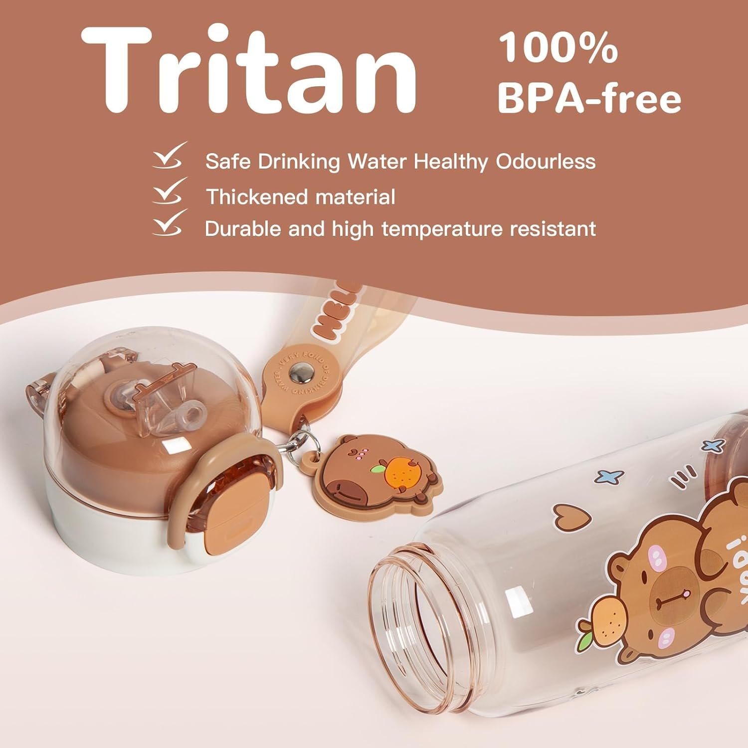 【Food Grade Tritan Material】- Our capybara water bottle made of BPA-free, food-grade and thicker Tritan material, both sturdy and durable. With a generous 17oz / 510ml capacity, it effortlessly meets your daily hydration needs.