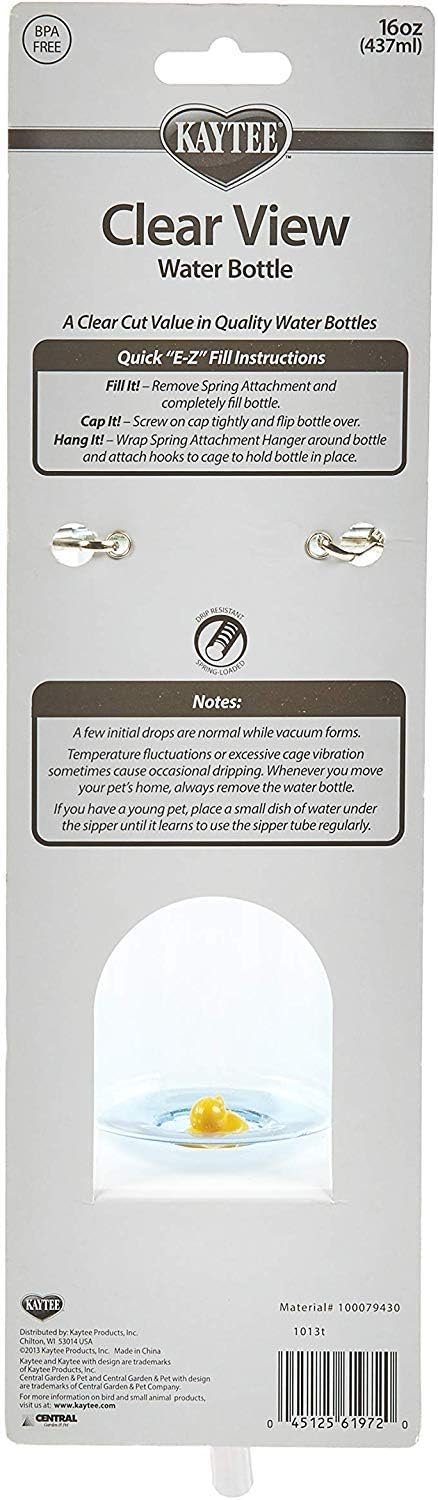 Kaytee Small Animal Clear Water Bottle, 16 Ounces Per Bottle (2 Pack)