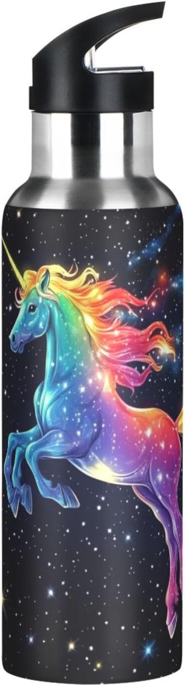 Kcldeci Unicorn Rainbow Galaxy Sports Water Bottle 20 Oz Straw Lid Leak Proof Vacuum Insulated Stainless Steel Hot Cold Double Walled Thermo Mug Tumbler Travel Cup Standard Metal Canteen