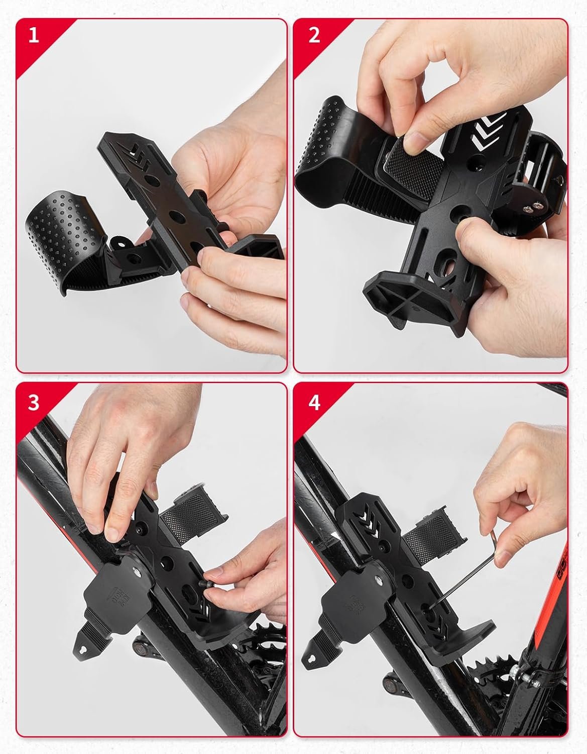 【Easy to Install】You can complete the installation of the bicycle water bottle holder in just 4 steps by tightening the screw. Moreover, you can DIY the position of the bottle holder according to your needs.